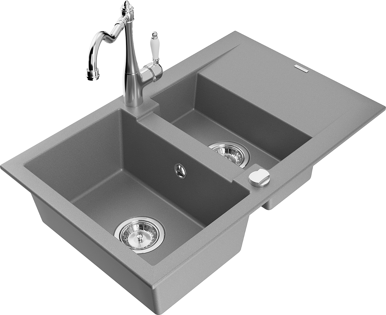 Mexen Gaspar granitový dřez 1,5-komorový s odkapávačem a kuchyňskou baterií Carla, šedý - 6507-71-670700-00
