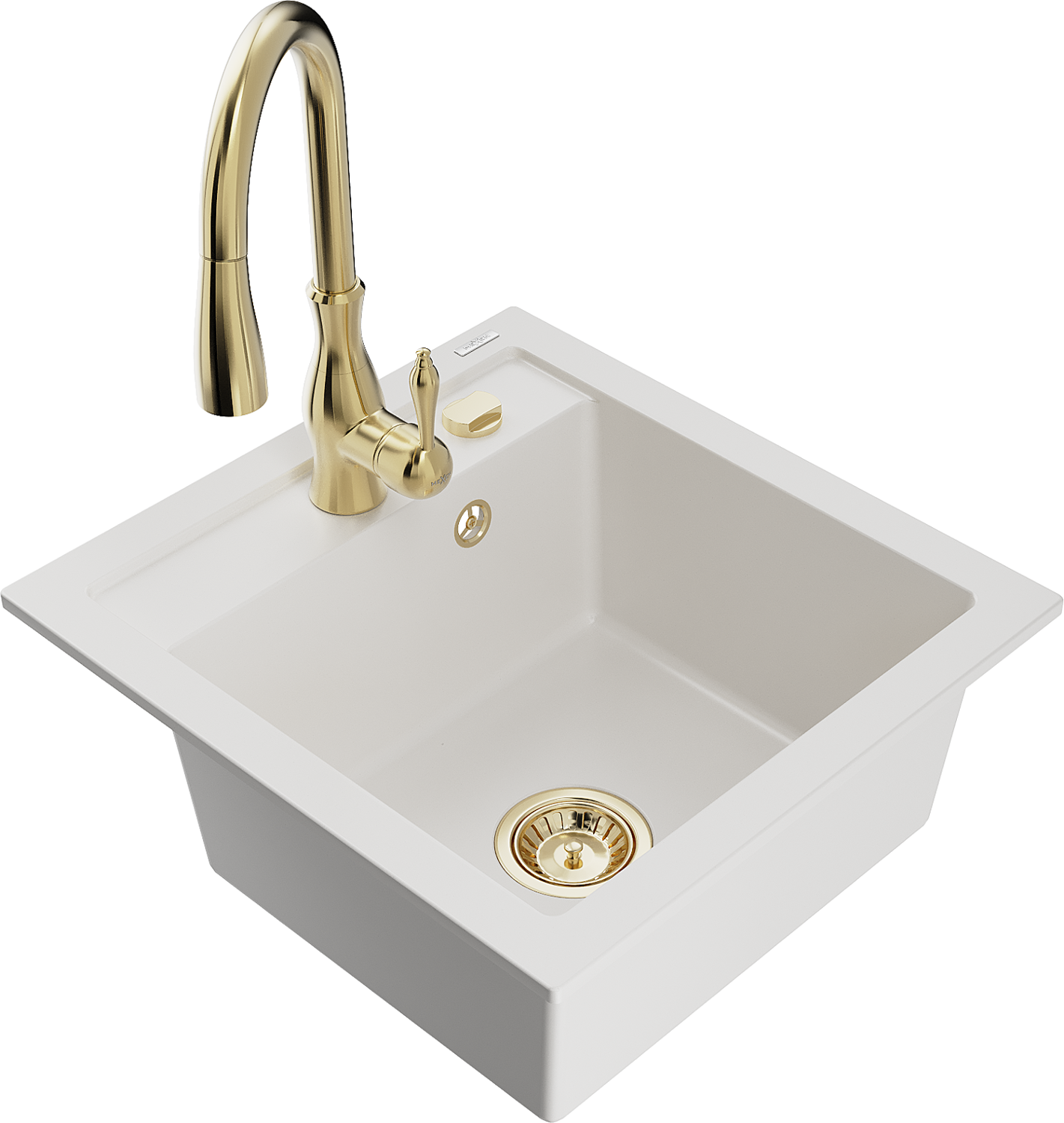 Mexen Vito granitový dřez 1-komorový s kuchyňskou baterií Savita, bílý - 6503-20-672601-50