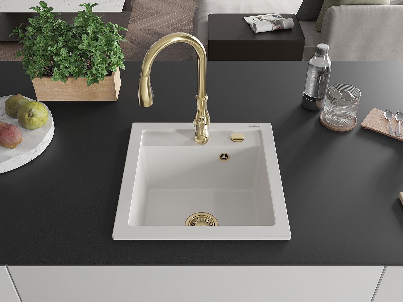 Povrch dřezu je odolný proti skvrnám a zabarvení, což usnadňuje jeho čištění a zachovává jeho barvu po dlouhou dobu používání. Estetický a praktický doplněk každé kuchyně.