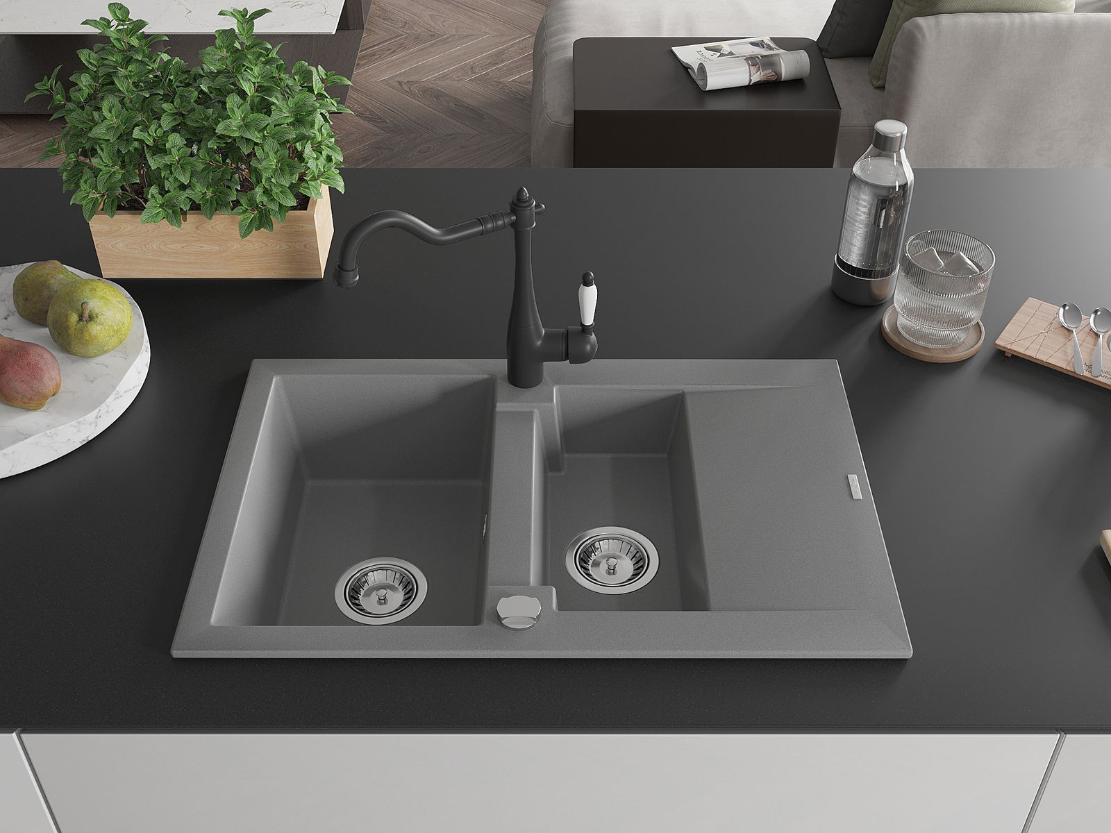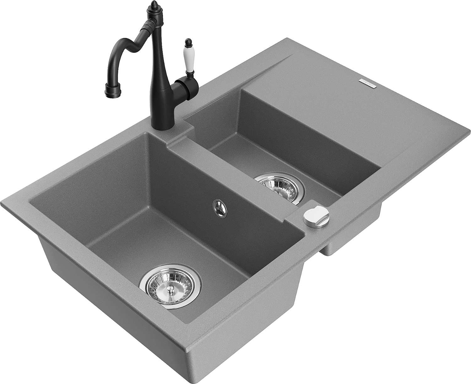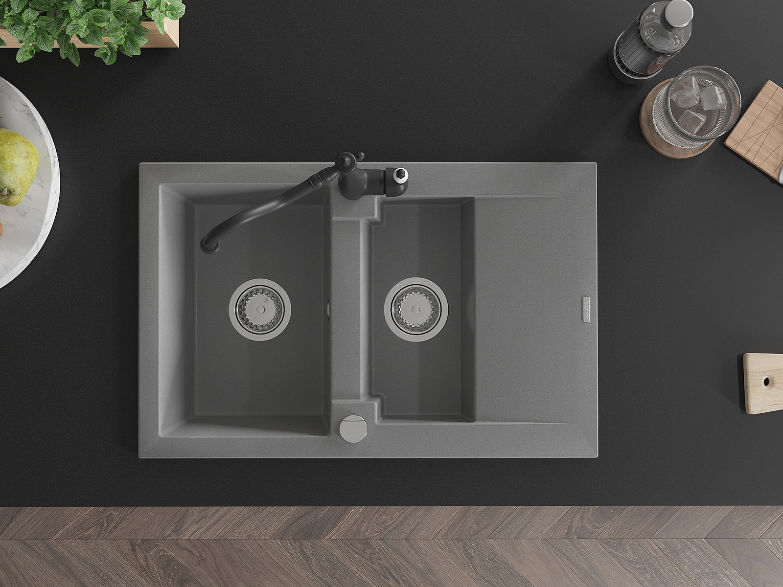 Mexen Gaspar žulový dřez 1,5komorový s odkapávačem a kuchyňskou baterií Carla, šedý - 6507-71-670700-70