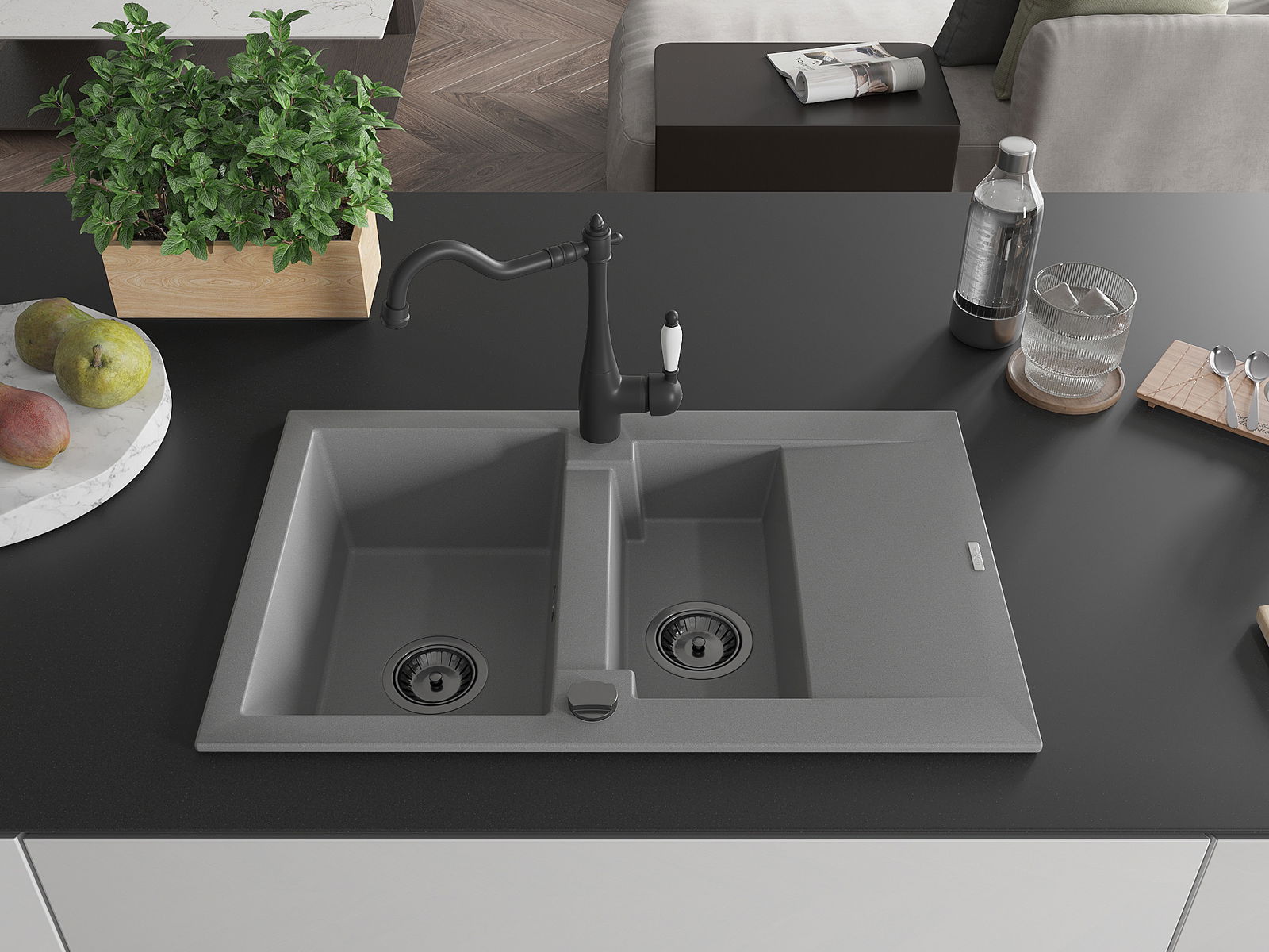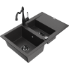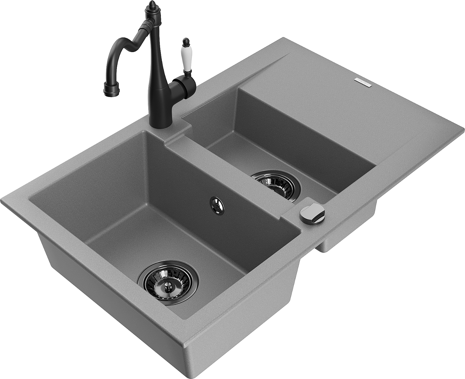 Mexen Gaspar žulový dřez 1,5-komorový s odkapávačem a kuchyňskou baterií Carla, šedý - 6507-71-670700-70-B