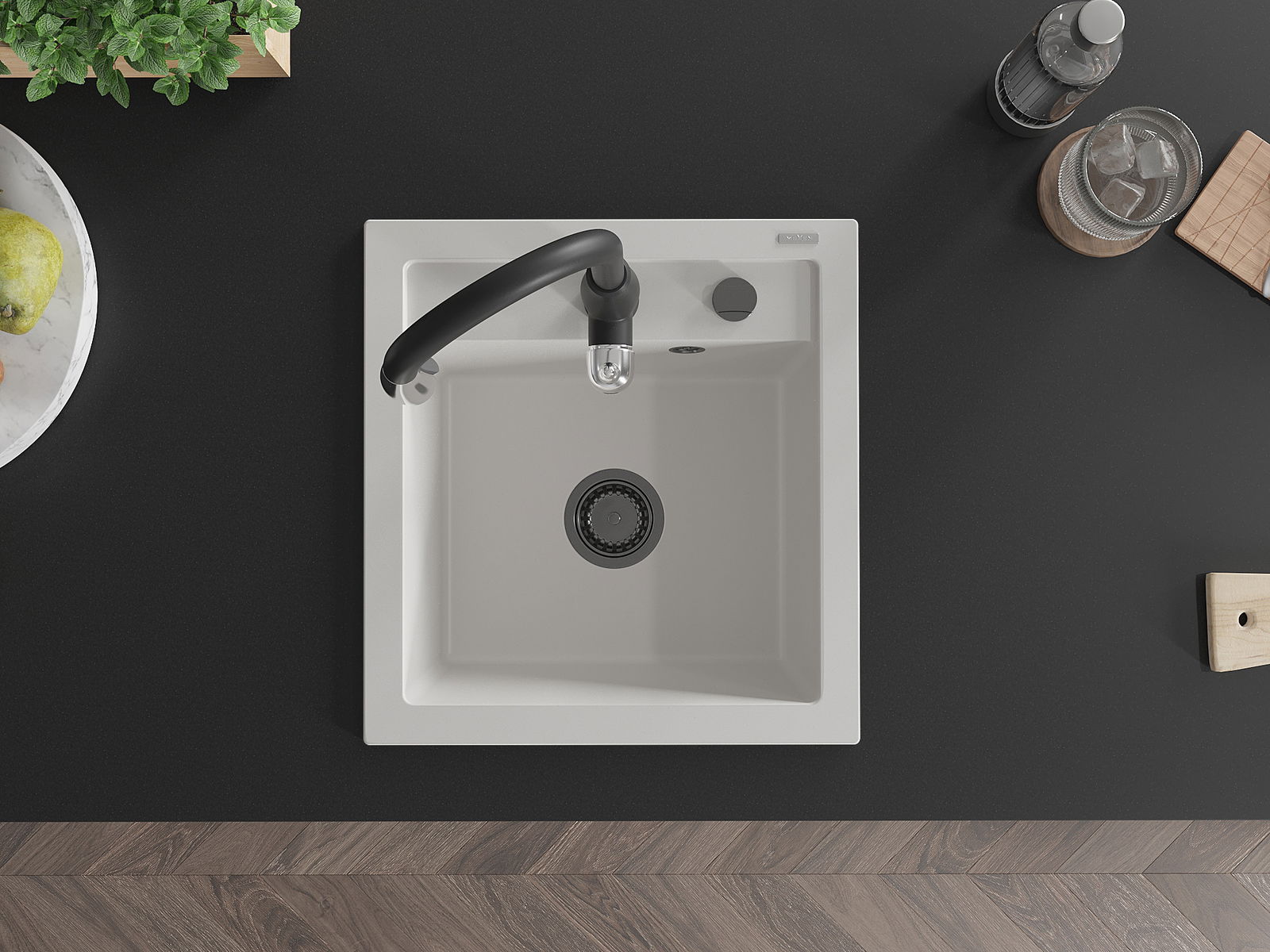 Povrch dřezu je odolný proti skvrnám a zabarvení, což usnadňuje jeho čištění a zachovává jeho barvu po dlouhou dobu používání. Estetický a praktický doplněk každé kuchyně.