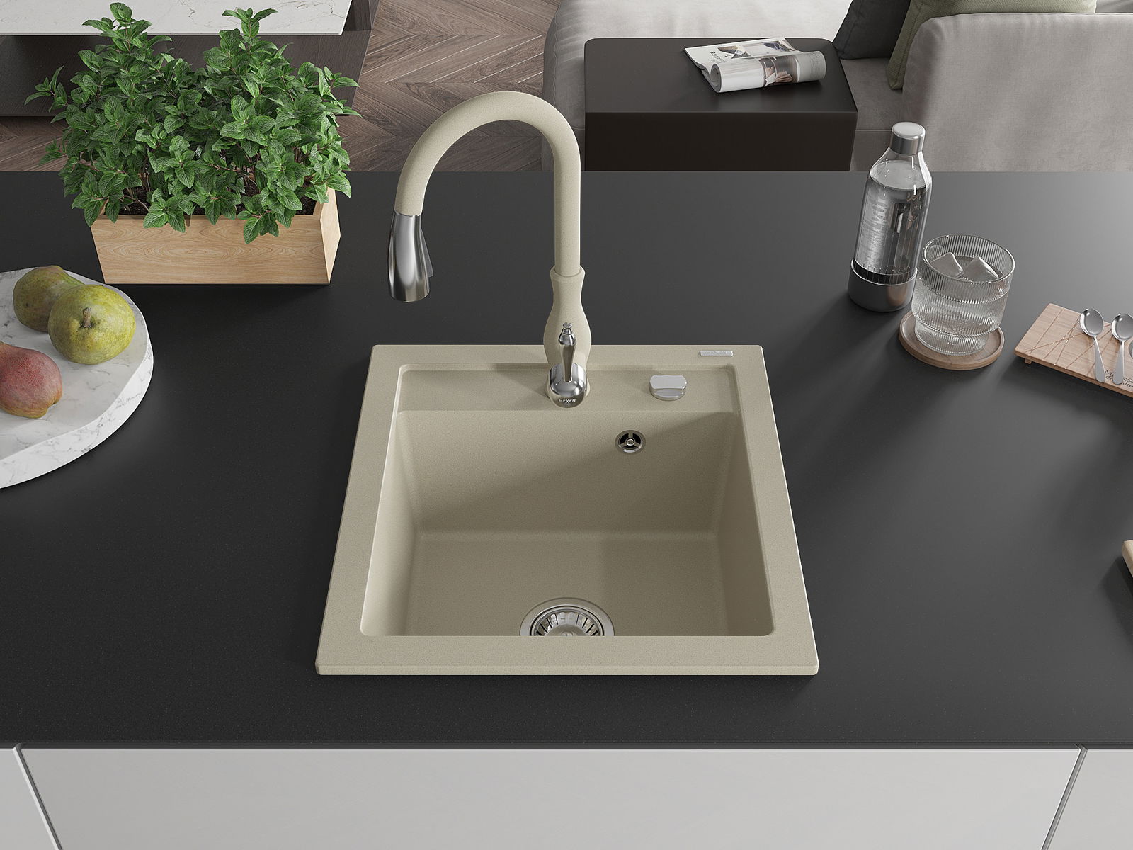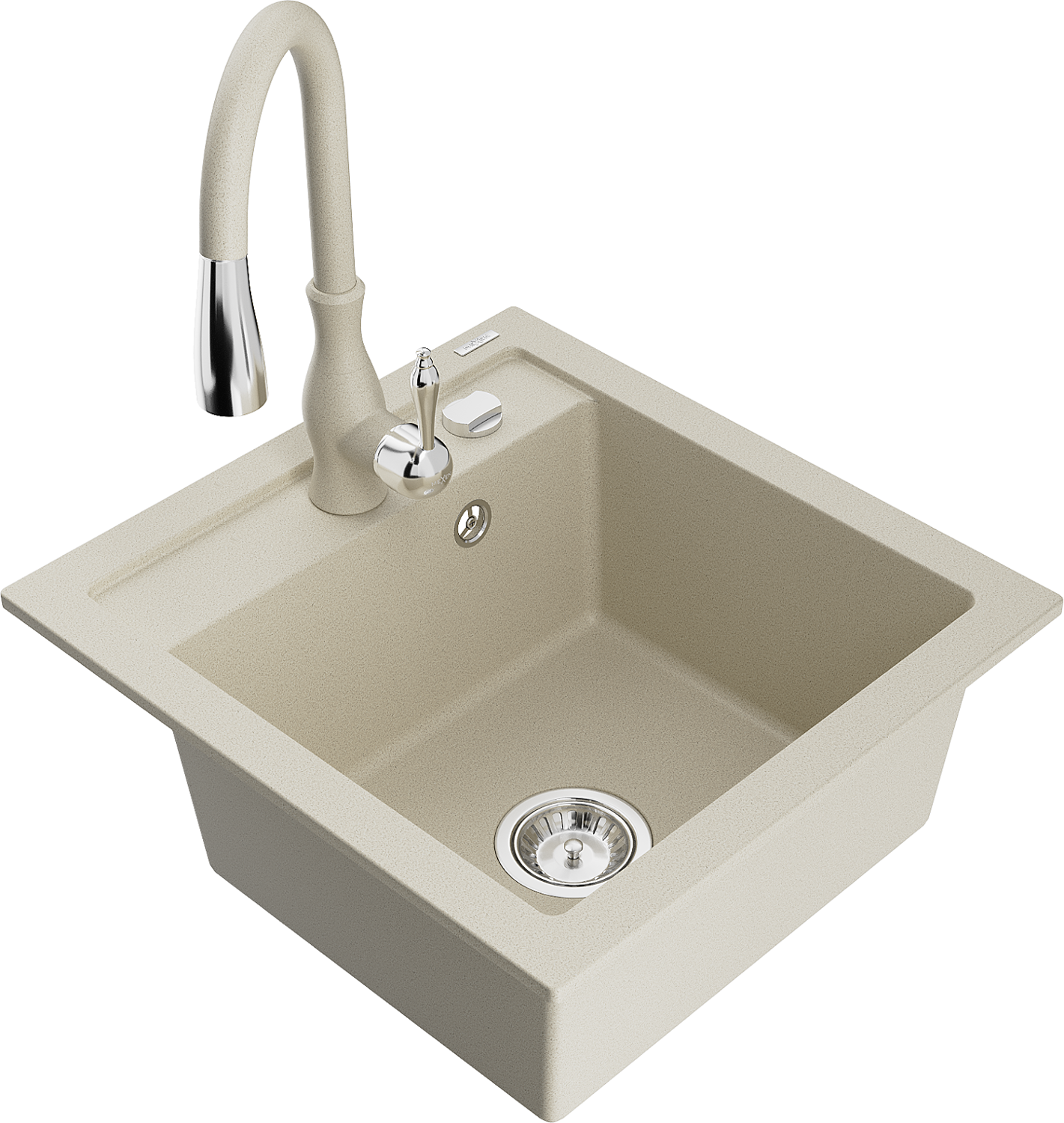 Mexen Vito granitový dřez 1-komorový s kuchyňskou baterií Savita, béžový - 6503-69-672601-69