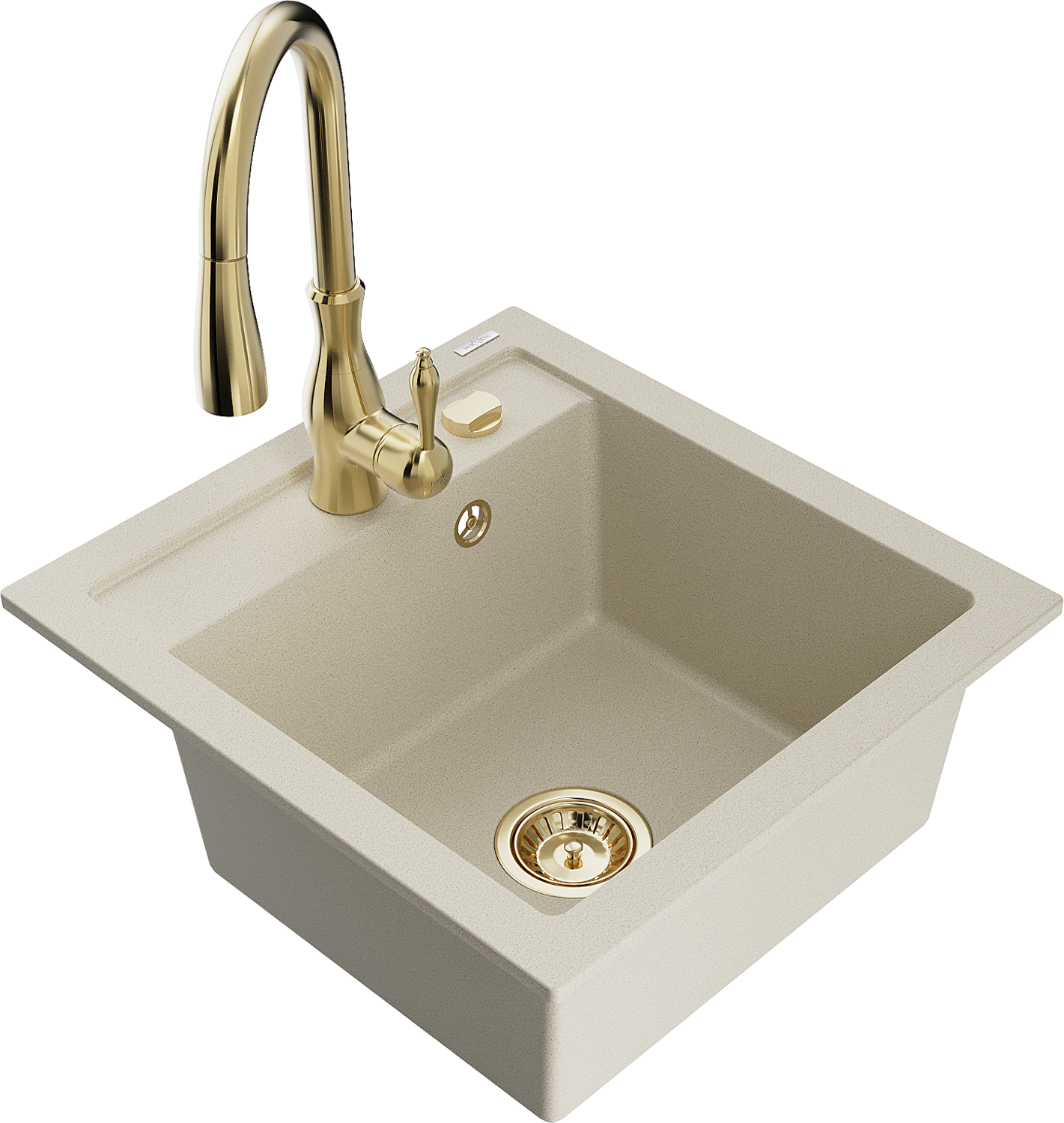 Mexen Vito granitový dřez 1-komorový s kuchyňskou baterií Savita, béžový - 6503-69-672601-50