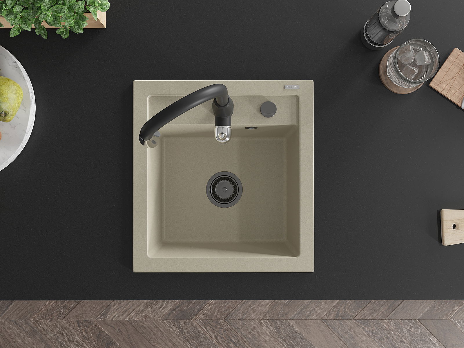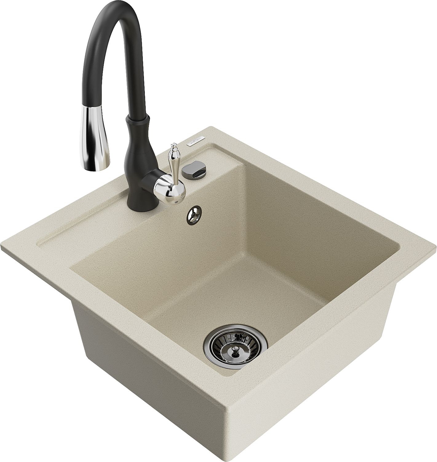 Mexen Vito kuchyňský dřez z litého kamene 1-komorový s kuchyňskou baterií Savita, béžový - 6503-69-672601-70