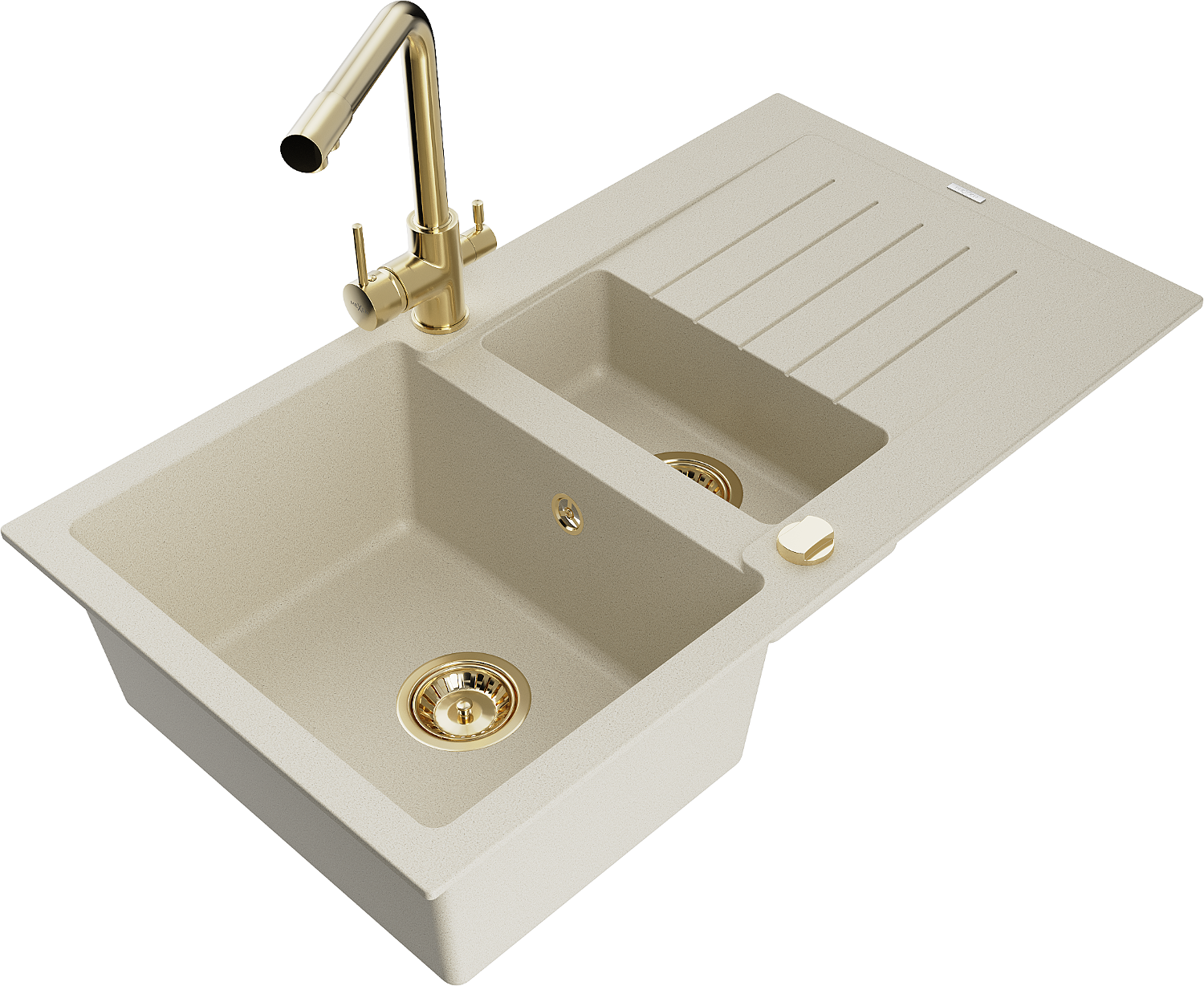 Mexen Matias granitový dřez 1,5-komorový s odkapem a kuchyňskou baterií Duero, béžový - 6502-69-671600-50