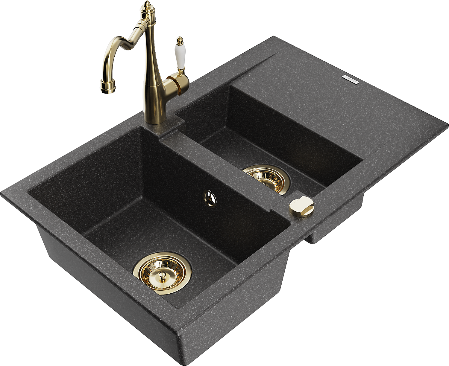 Mexen Gaspar žulový dřez 1,5-komorový s odkapávačem a kuchyňskou baterií Carla, černý posetý - 6507-76-670700-50