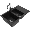 Mexen Gaspar granitový dřez 1,5-komorový s odkapávačem a kuchyňskou baterií Carla, černý skvrnitý - 6507-76-670700-70-B