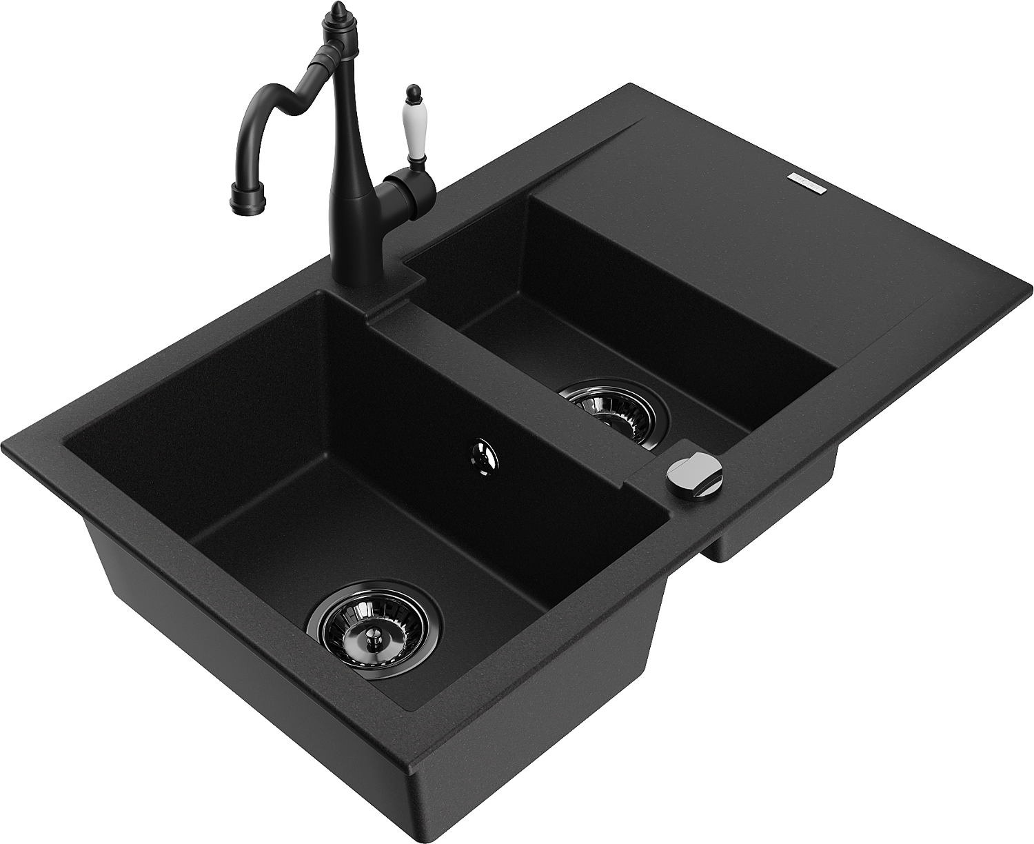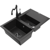 Mexen Gaspar granitový dřez 1,5-komorový s odkapávačem a kuchyňskou baterií Carla, černý - 6507-77-670700-70-B