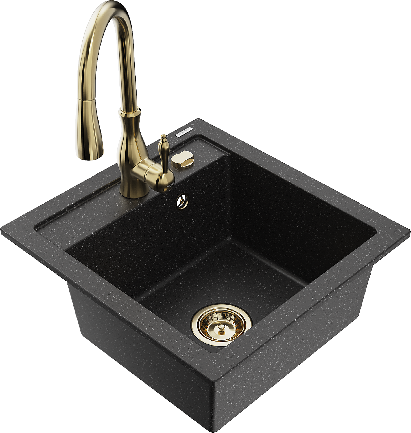 Mexen Vito granitový dřez s 1 komorou s kuchyňskou baterií Savita, černý/stříbrný metalický - 6503-73-672601-50