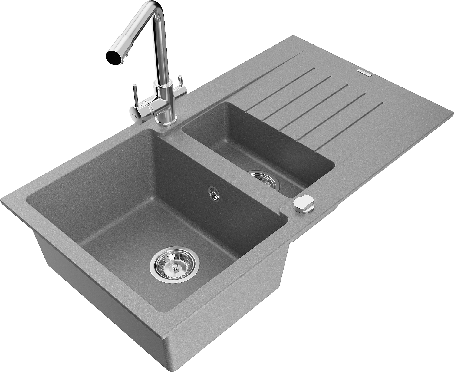 Mexen Matias žulový dřez 1,5 komorový s odkapávačem a kuchyňskou baterií Duero, šedý - 6502-71-671600-00
