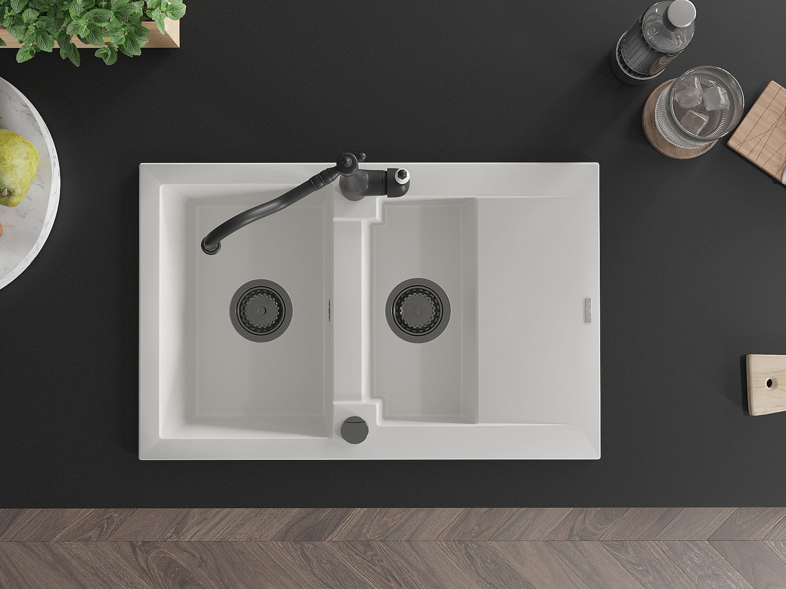 Povrch dřezu je velmi dobře vytvrzený, vyznačuje se výjimečnou odolností proti mechanickému poškození a poškrábání. Trvanlivý materiál umožňuje užívat si dobrý vzhled dřezu po mnoho let používání.