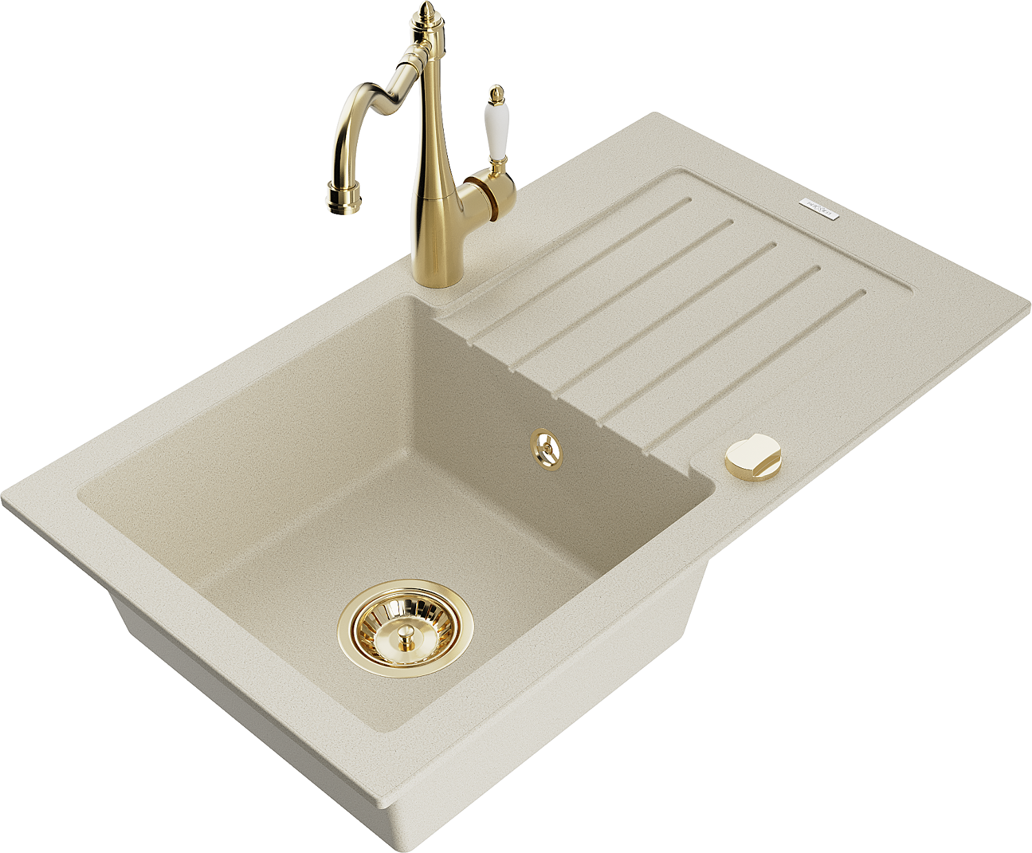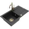 Mexen Pablo granitový dřez 1-komorový s odkapávačem a kuchyňskou baterií Carla, béžový - 6510-69-670700-50
