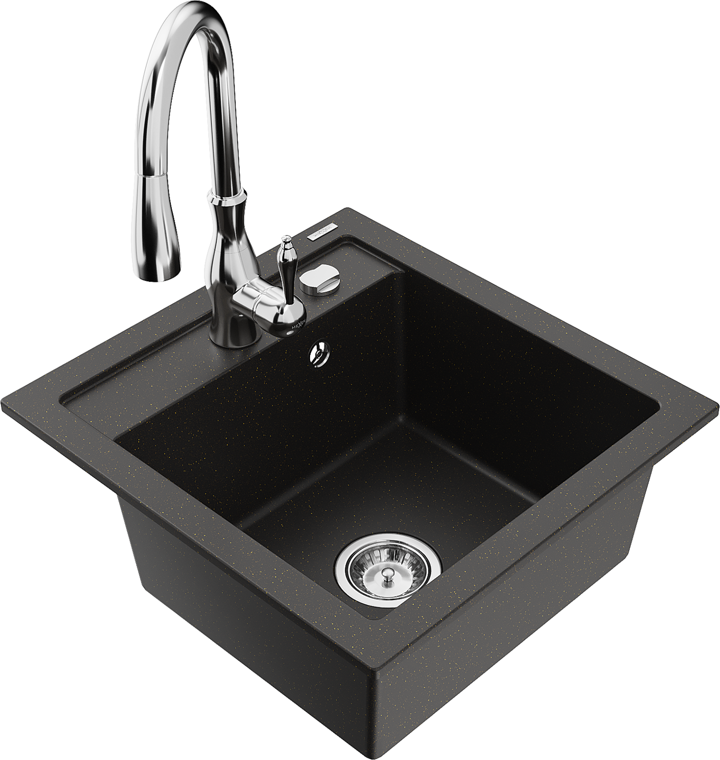 Mexen Vito granitový dřez 1-komorový s kuchyňskou baterií Savita, černo/zlatý metalik - 6503-75-672601-00