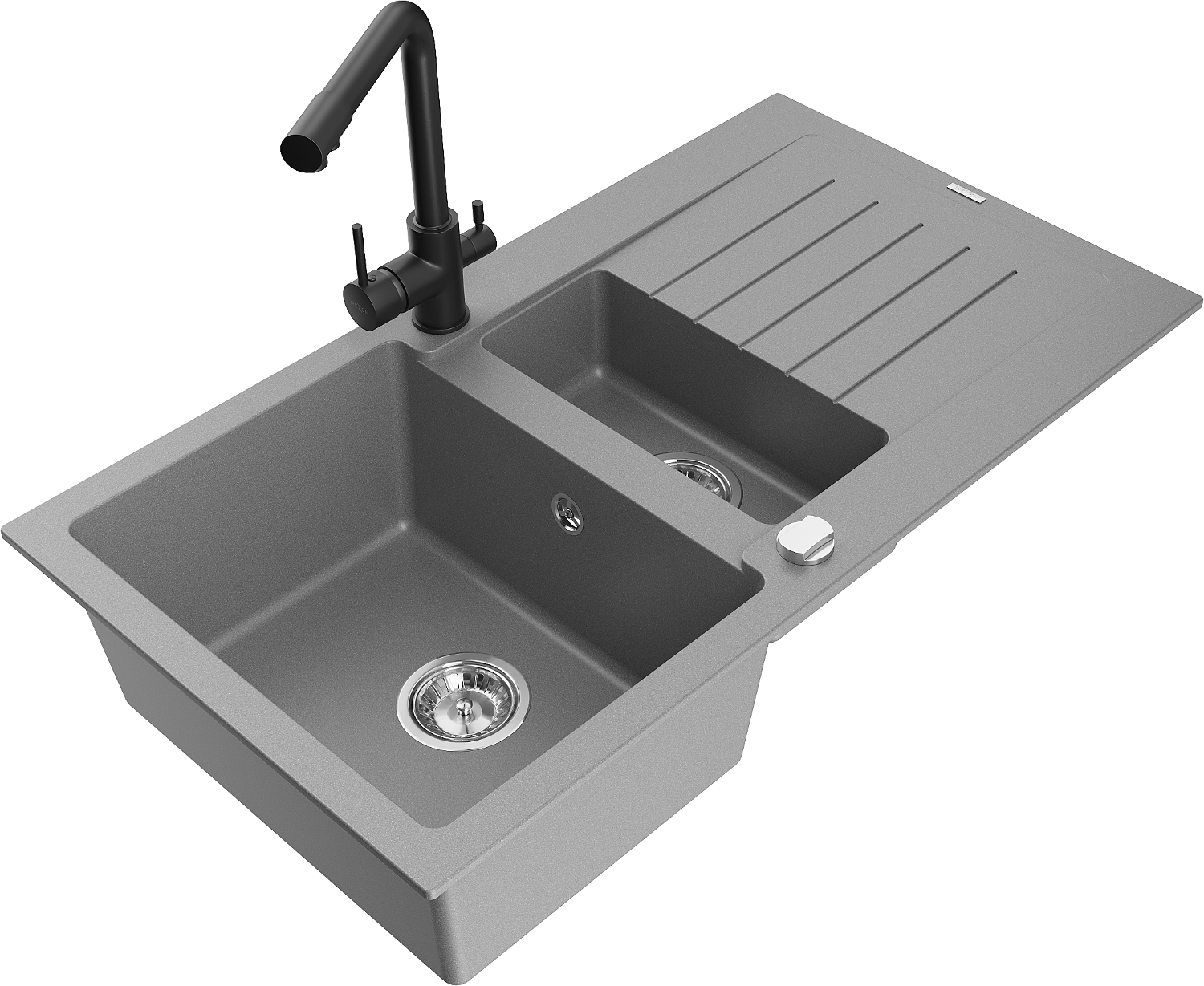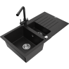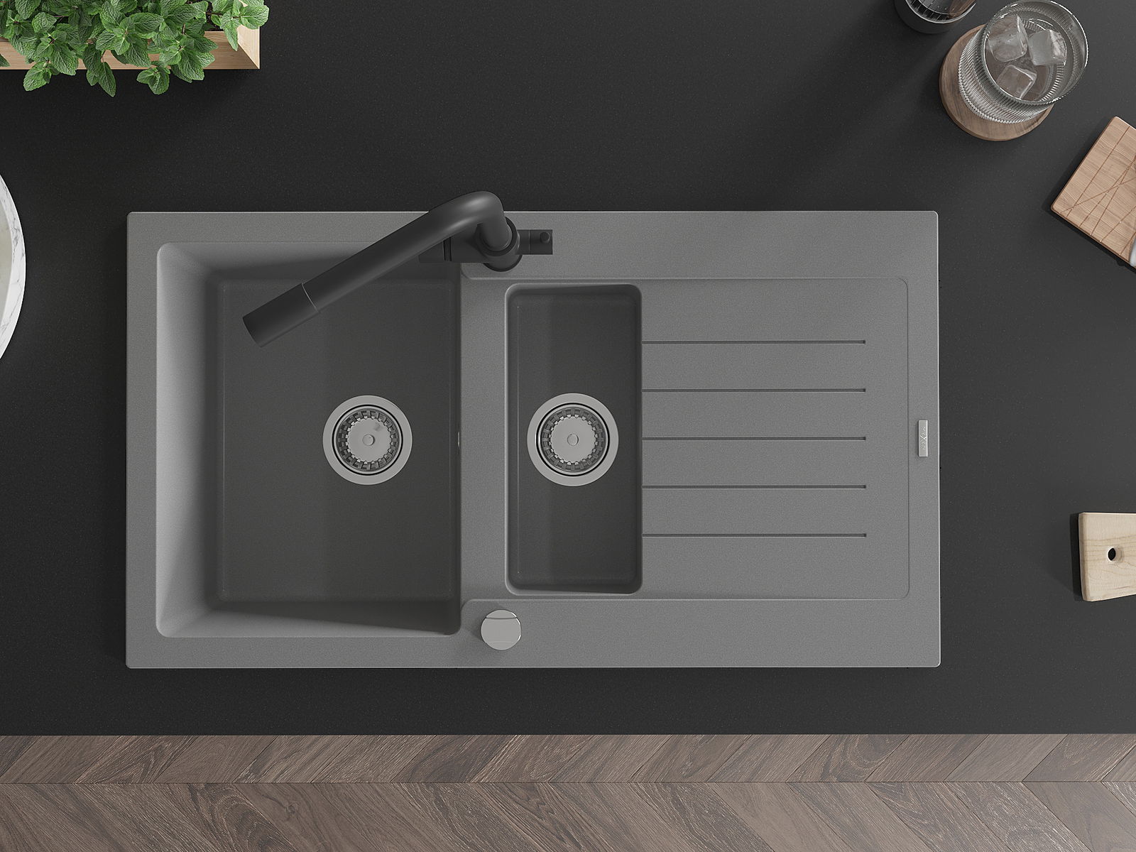 Mexen Matias granitový dřez 1,5-komorový s odkapávačem a kuchyňskou baterií Duero, šedý - 6502-71-671600-70