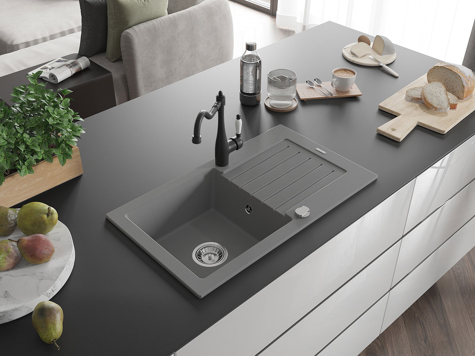 Dřez byl vyroben z vysoce kvalitního granitu. Představuje elegantní a především praktický doplněk každé kuchyně, bez ohledu na její styl. Vysoká kvalita a trvanlivost granitu zajišťují dlouholeté používání.