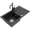Mexen Pablo granitový dřez 1-komorový s odkapávačem a kuchyňskou baterií Carla, šedý - 6510-71-670700-70