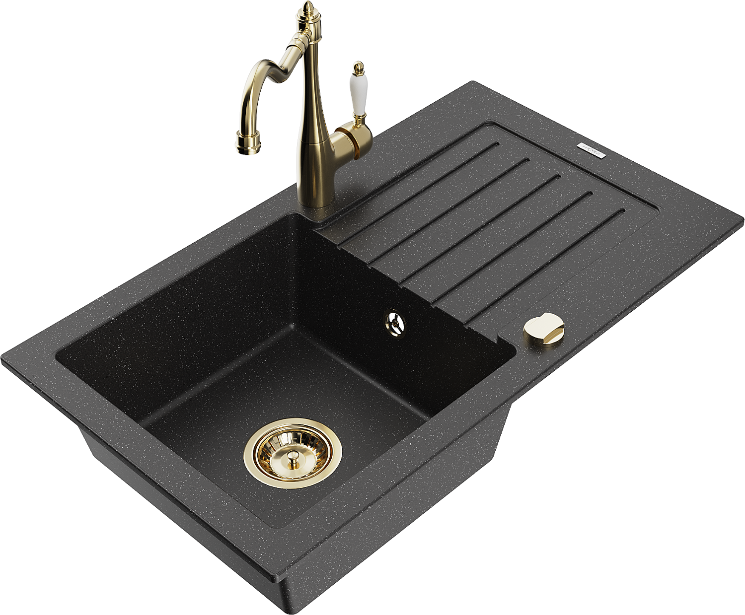 Mexen Pablo granitový dřez 1-komorový s odkapávačem a kuchyňskou baterií Carla, černý/stříbrný metalik - 6510-73-670700-50