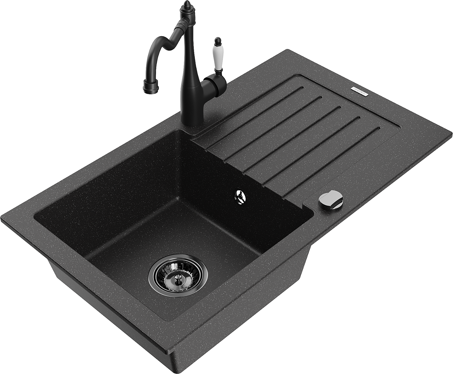 Mexen Pablo žulový jednodřez s odkapávačem a kuchyňskou baterií Carla, černý/stříbrný metalický - 6510-73-670700-70-B