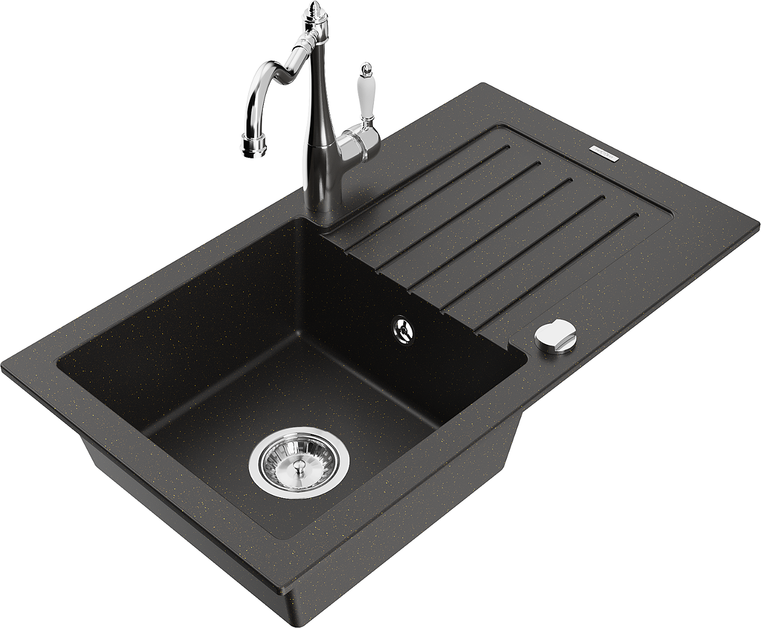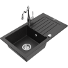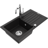 Mexen Pablo granitový dřez 1-komorový s odkapávačem a kuchyňskou baterií Carla, černý/zlatý metalik - 6510-75-670700-00