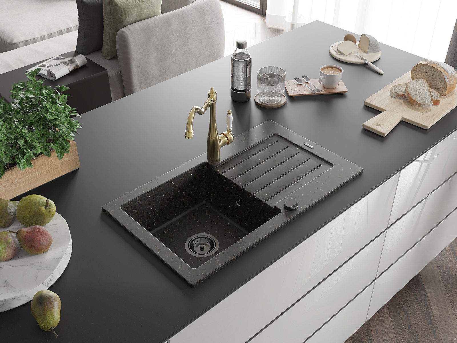Dřez byl vyroben z vysoce kvalitního granitu. Představuje elegantní a především praktický doplněk každé kuchyně, bez ohledu na její styl. Vysoká kvalita a trvanlivost granitu zajišťují dlouholeté používání.