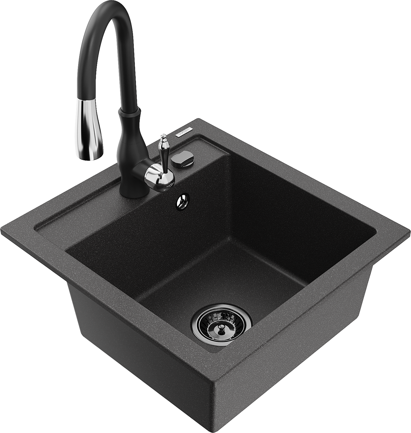 Mexen Vito granitový dřez s 1 komorou a kuchyňskou baterií Savita, černý s tečkami - 6503-76-672601-70-B