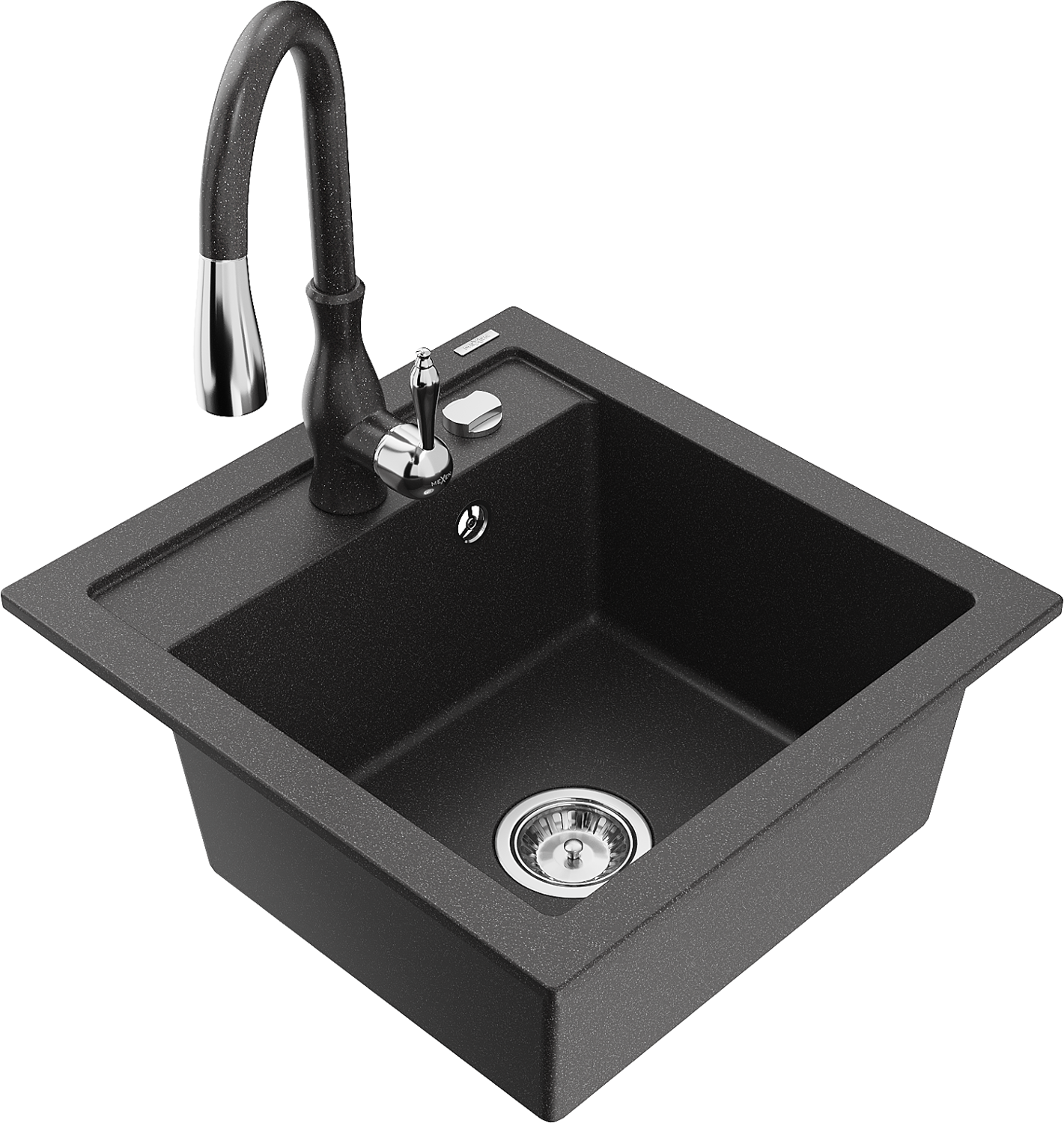 Mexen Vito granitový dřez s jednou komorou a kuchyňskou baterií Savita, černý strakatý - 6503-76-672601-76