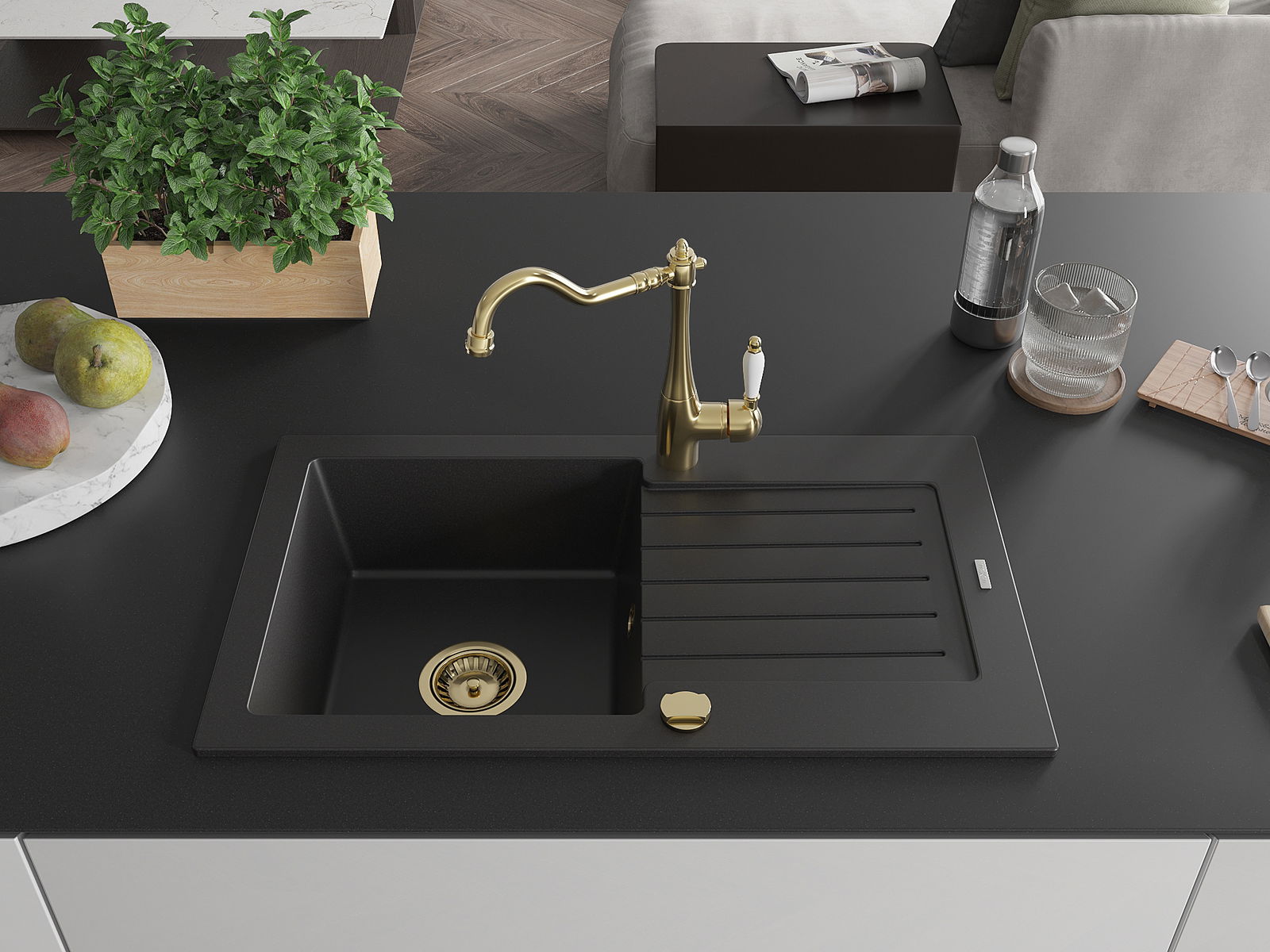 Dřez byl vyroben z vysoce kvalitního granitu. Představuje elegantní a především praktický doplněk každé kuchyně, bez ohledu na její styl. Vysoká kvalita a trvanlivost granitu zajišťují dlouholeté používání.