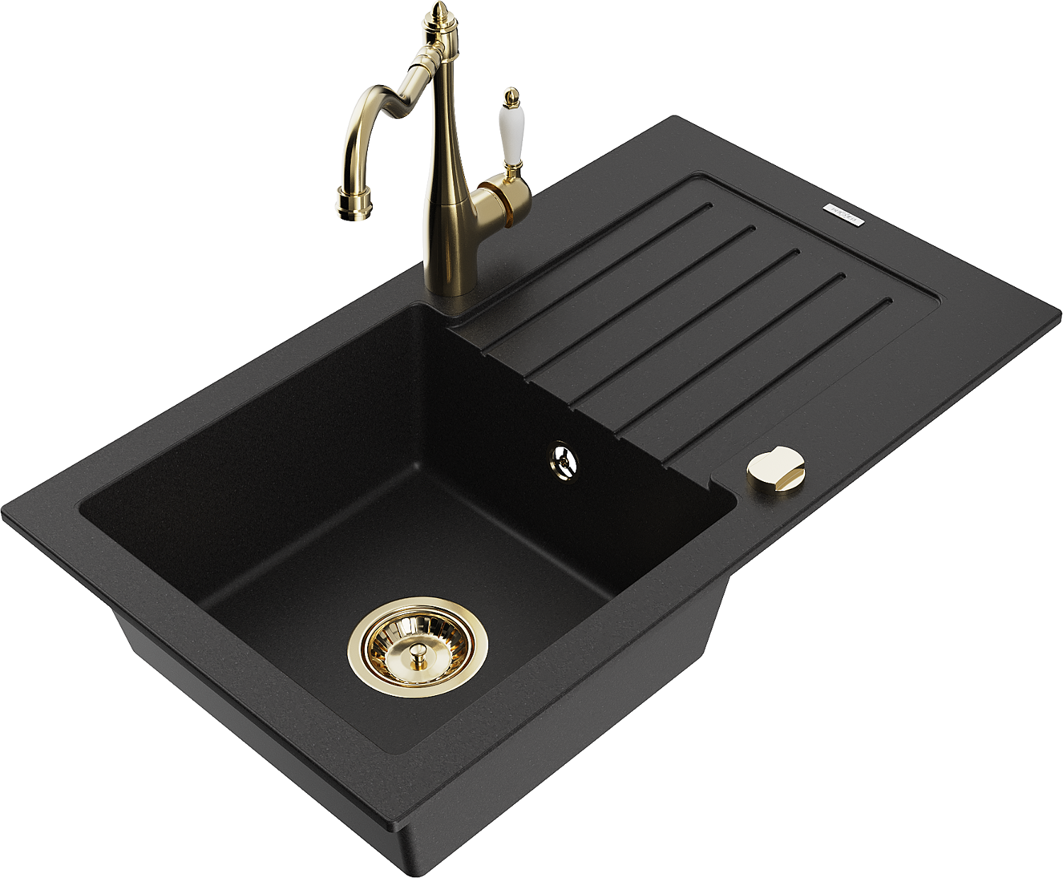Mexen Pablo granitový dřez s 1 komorou a odkapávačem a kuchyňskou baterií Carla, černý - 6510-77-670700-50