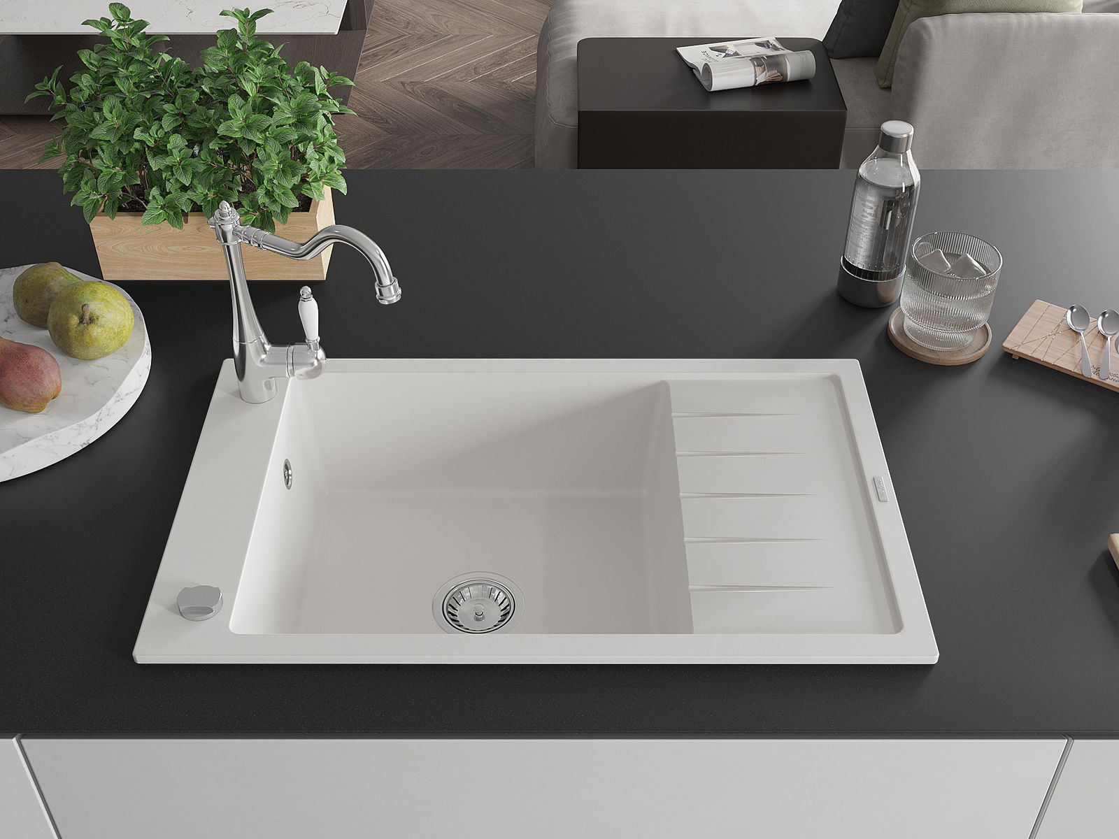 Dřez byl vyroben z vysoce kvalitního granitu. Představuje elegantní a především praktický doplněk každé kuchyně, bez ohledu na její styl. Vysoká kvalita a trvanlivost granitu zajišťují dlouholeté používání.
