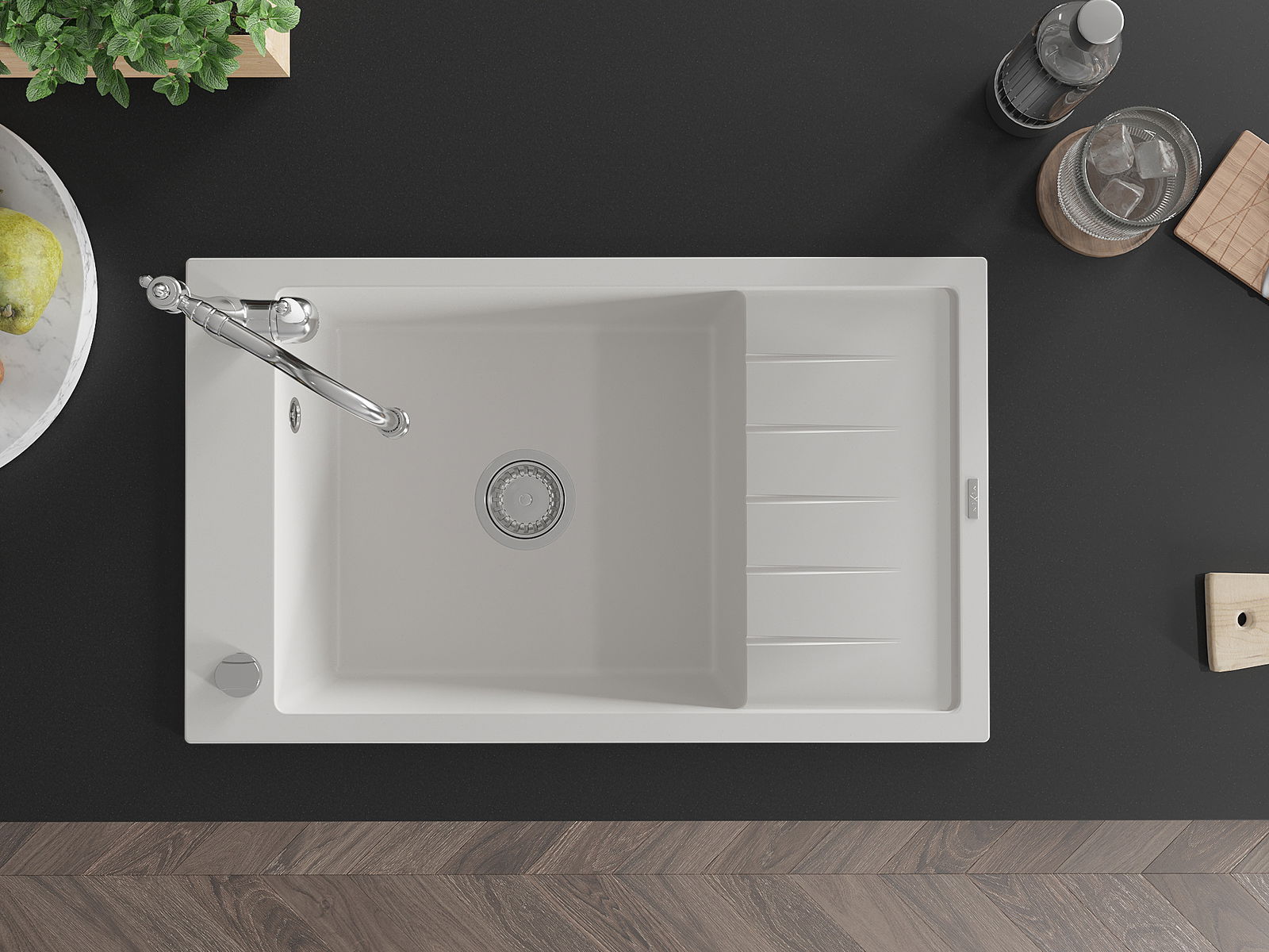 Povrch dřezu je velmi dobře vytvrzený, vyznačuje se výjimečnou odolností proti mechanickému poškození a poškrábání. Trvanlivý materiál umožňuje užívat si dobrý vzhled dřezu po mnoho let používání.