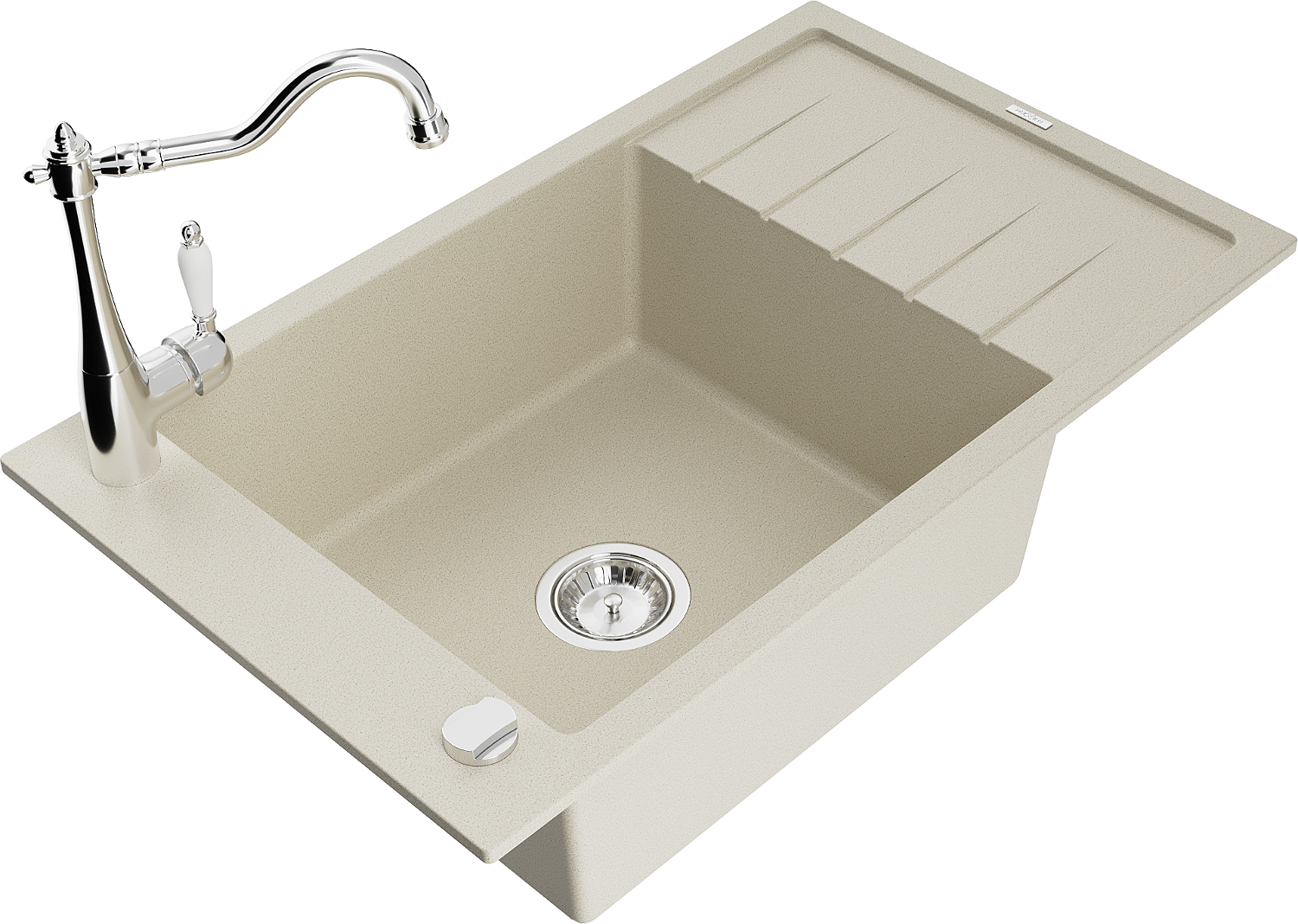 Mexen Elias žulový dřez s 1 komorou a odkapávačem s kuchyňskou baterií Carla, béžový - 6511-69-670700-00