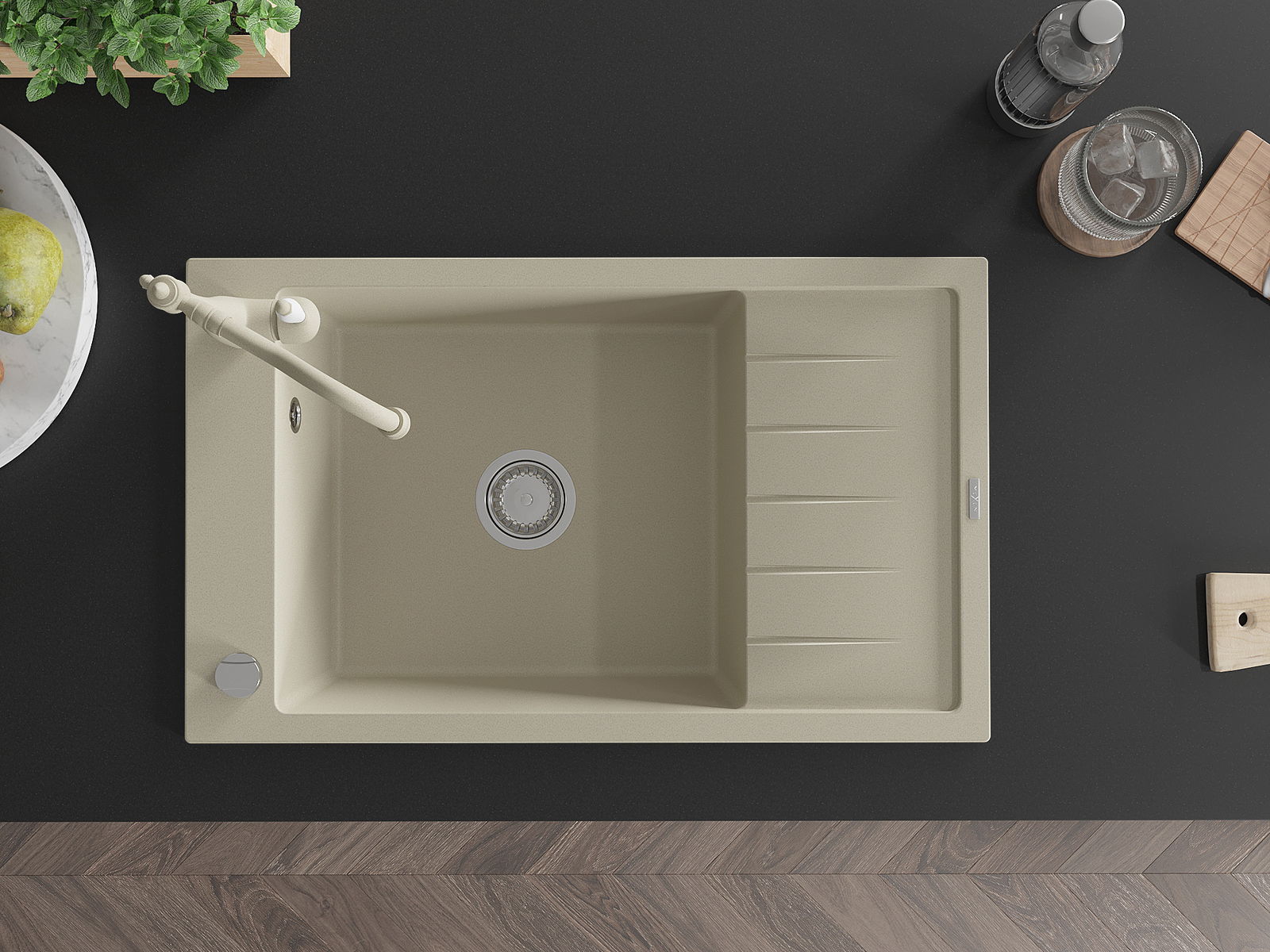 Dřez byl vyroben z vysoce kvalitního granitu. Představuje elegantní a především praktický doplněk každé kuchyně, bez ohledu na její styl. Vysoká kvalita a trvanlivost granitu zajišťují dlouholeté používání.