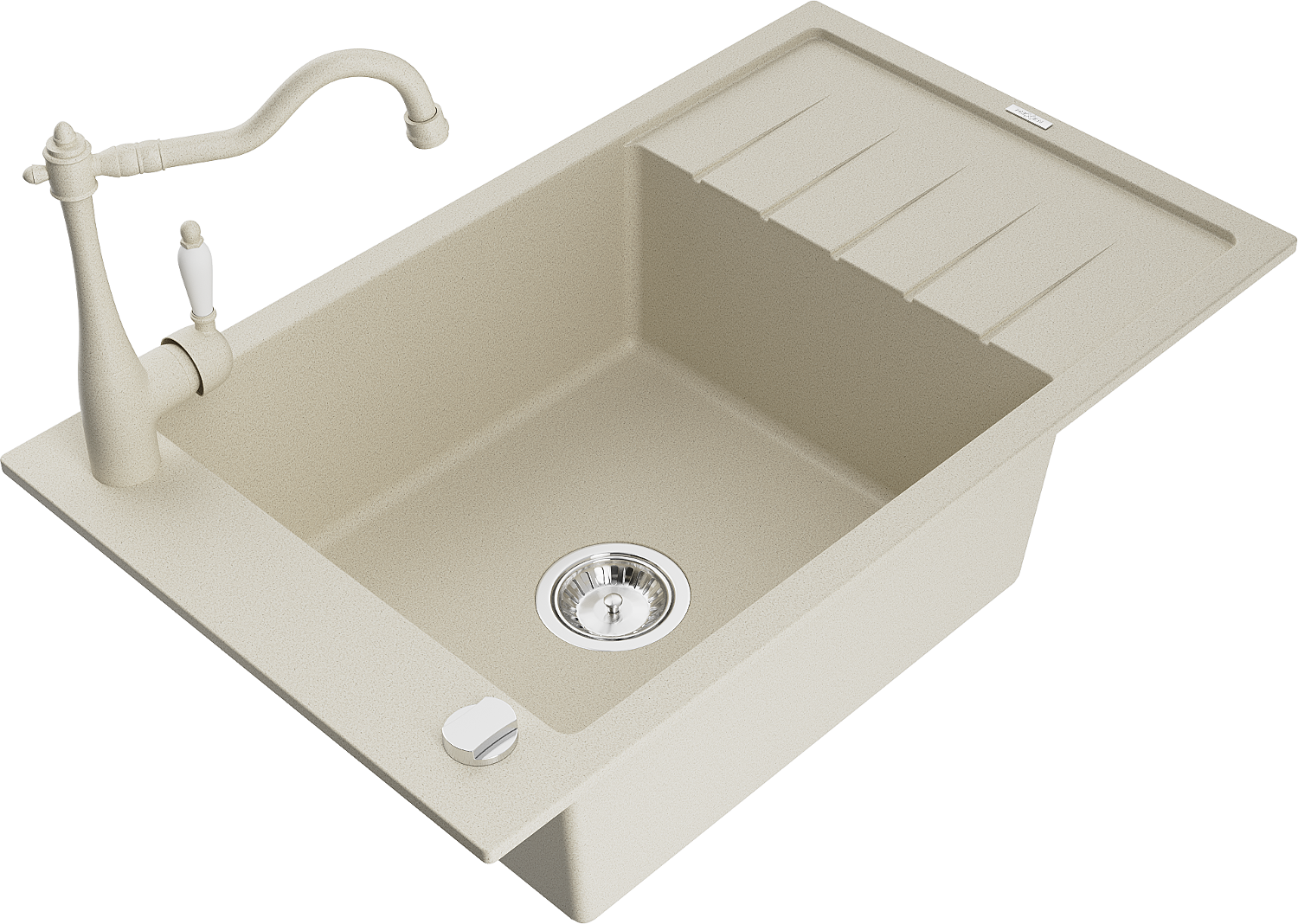 Povrch dřezu je odolný proti skvrnám a zabarvení, což usnadňuje jeho čištění a zachovává jeho barvu po dlouhou dobu používání. Estetický a praktický doplněk každé kuchyně.