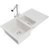 Povrch dřezu je odolný proti skvrnám a zabarvení, což usnadňuje jeho čištění a zachovává jeho barvu po dlouhou dobu používání. Estetický a praktický doplněk každé kuchyně.
