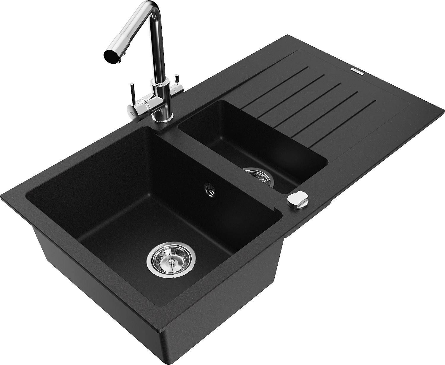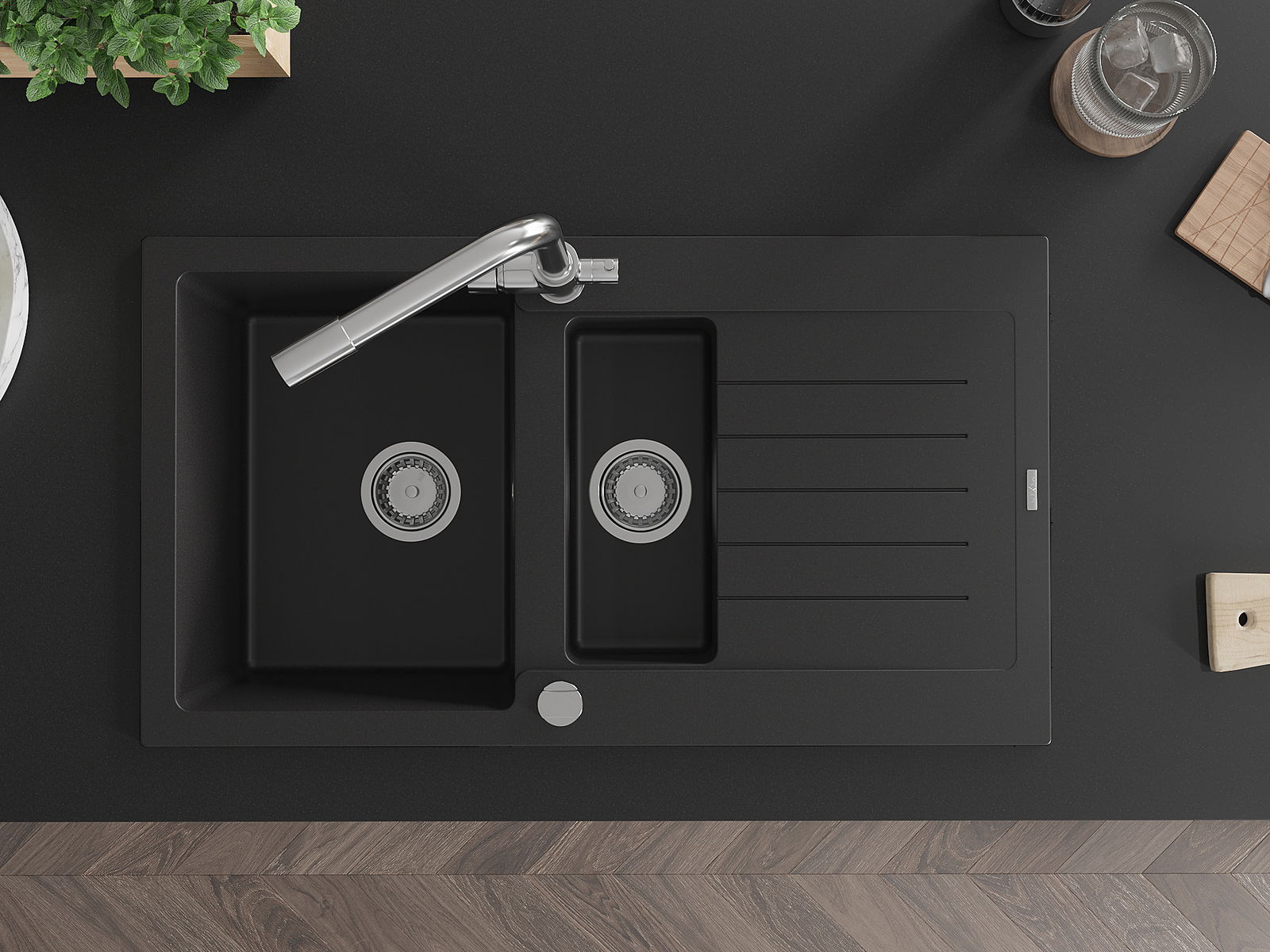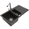Mexen Matias granitový dřez 1,5-komorový s odkapávačem a kuchyňskou baterií Duero, černý - 6502-77-671600-00