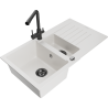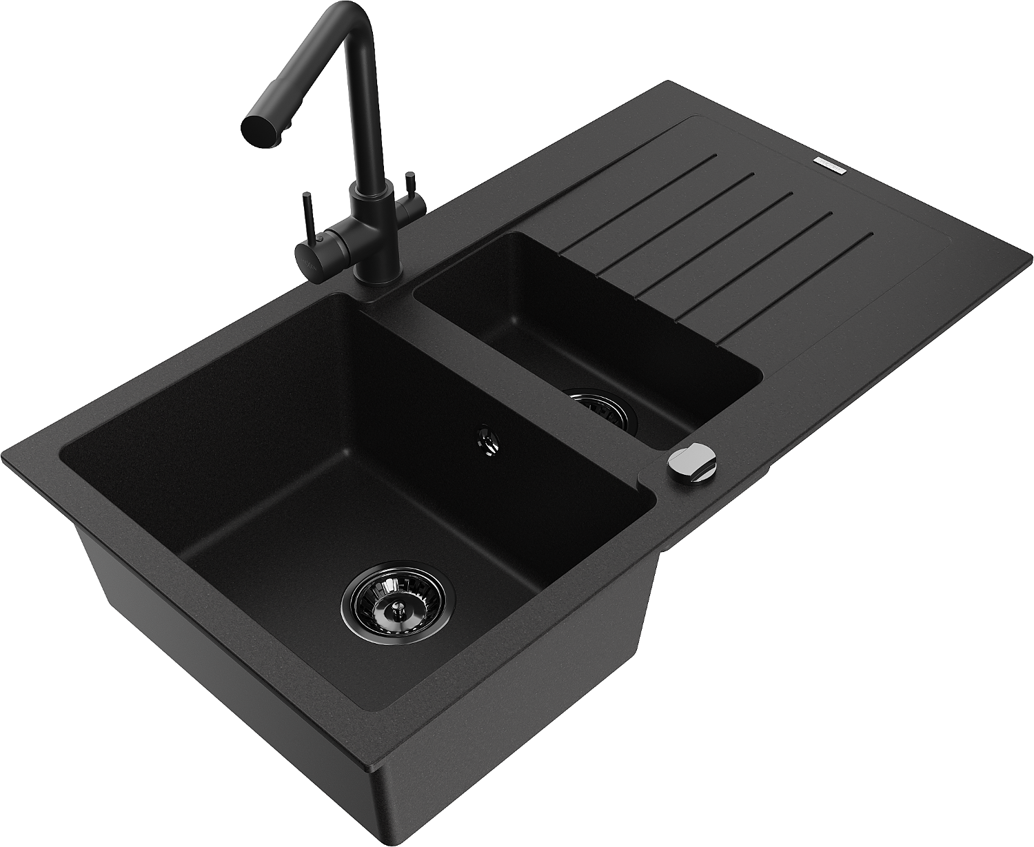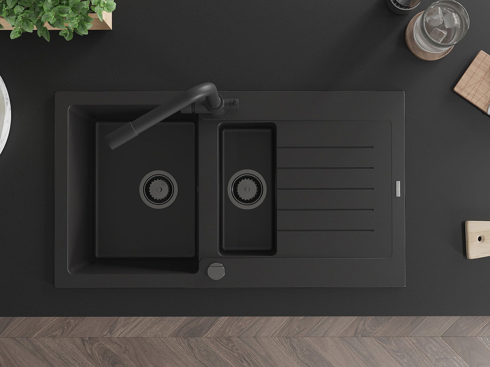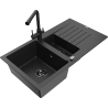Mexen Matias granitový dřez 1,5-komorový s odkapávačem a kuchyňskou baterií Duero, černý - 6502-77-671600-70-B