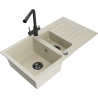 Povrch dřezu je odolný proti skvrnám a zabarvení, což usnadňuje jeho čištění a zachovává jeho barvu po dlouhou dobu používání. Estetický a praktický doplněk každé kuchyně.