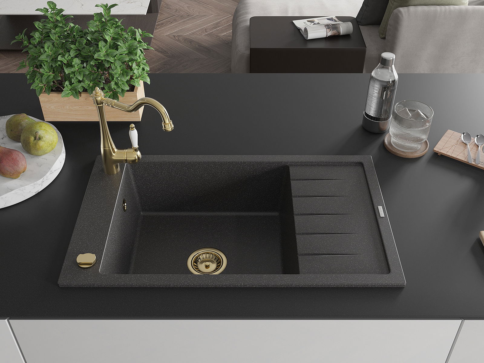 Dřez byl vyroben z vysoce kvalitního granitu. Představuje elegantní a především praktický doplněk každé kuchyně, bez ohledu na její styl. Vysoká kvalita a trvanlivost granitu zajišťují dlouholeté používání.