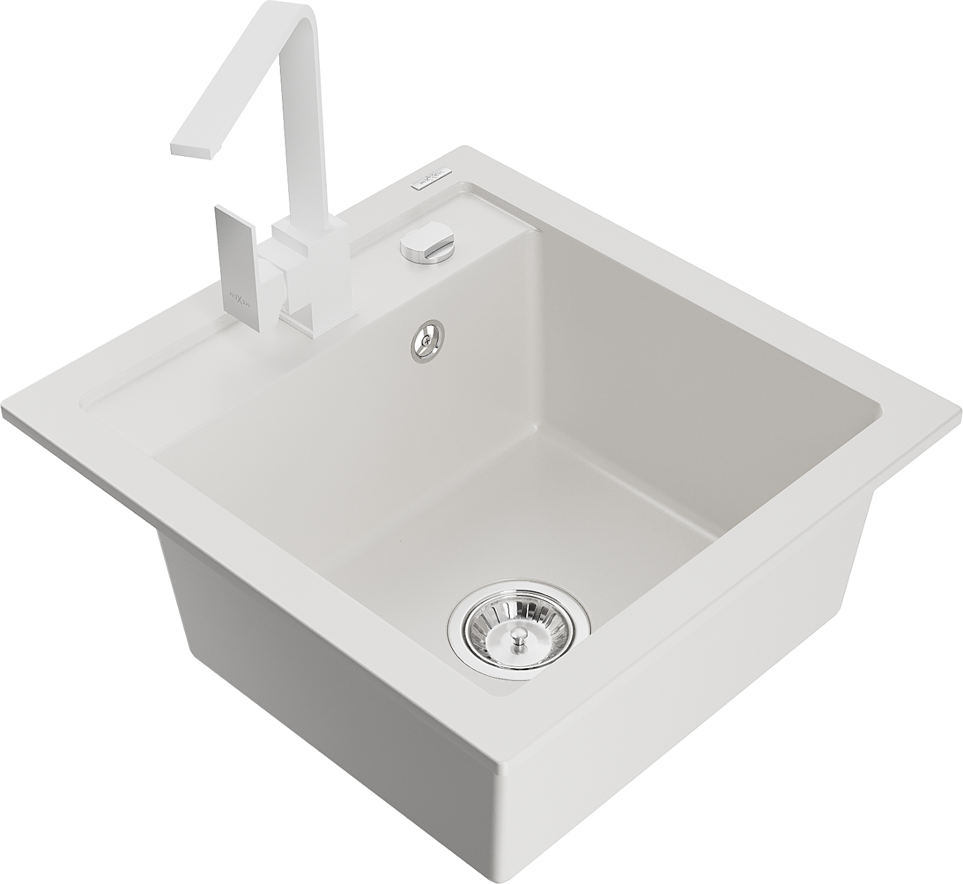 Mexen Vito granitový dřez 1-komorový s kuchyňskou baterií Rita, bílý - 6503-20-670300-20