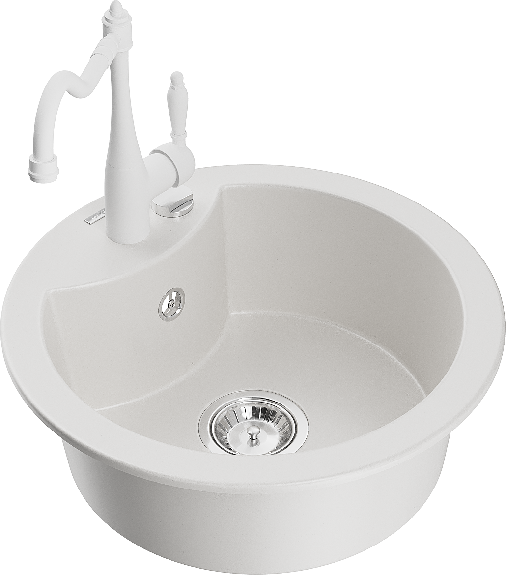 Mexen Diego granitový dřez 1-komorový s kuchyňskou baterií Carla, bílý - 6512-20-670700-20