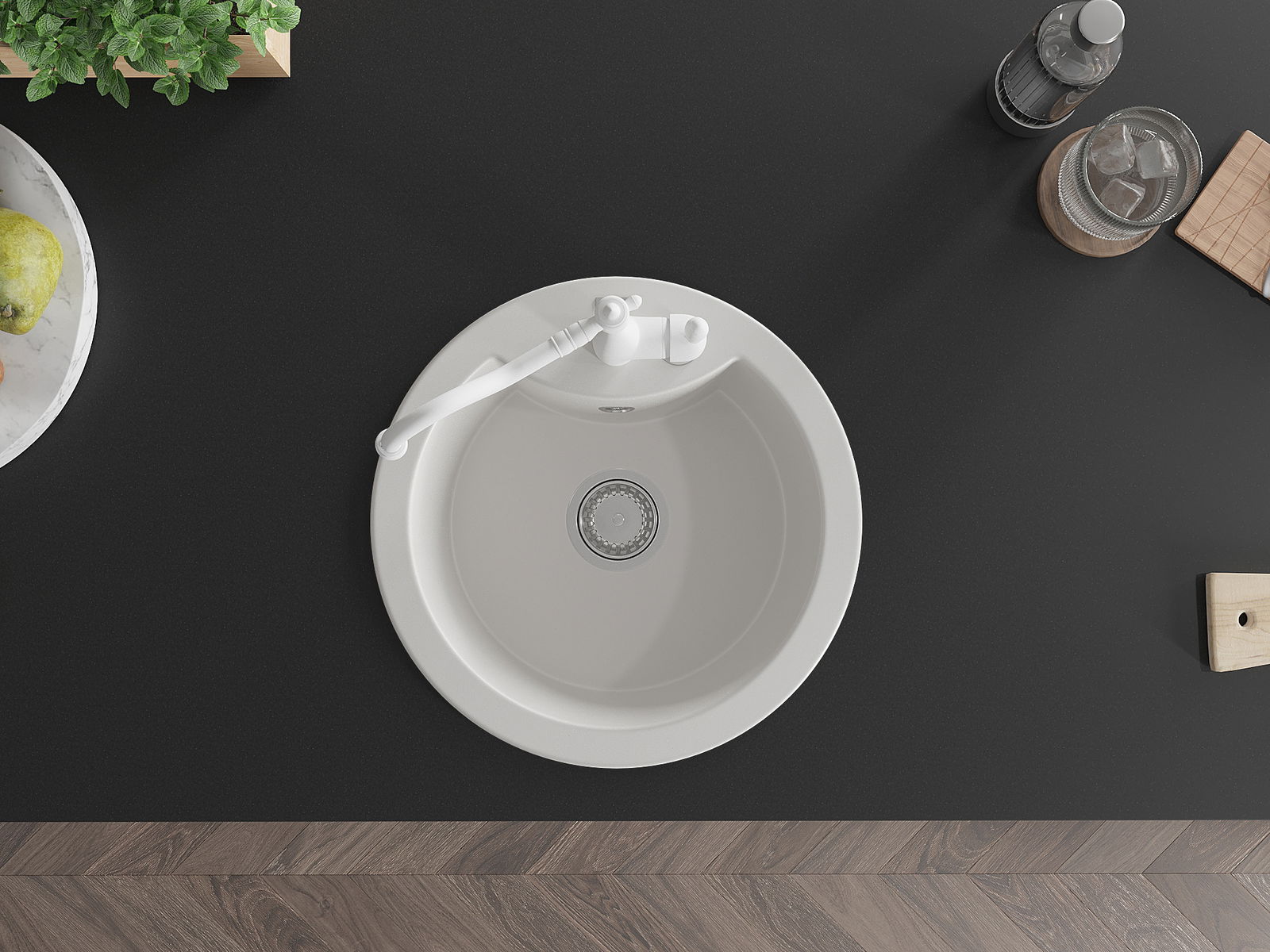 Povrch dřezu je odolný proti skvrnám a zabarvení, což usnadňuje jeho čištění a zachovává jeho barvu po dlouhou dobu používání. Estetický a praktický doplněk každé kuchyně.