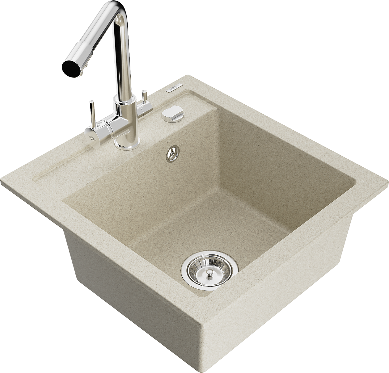Mexen Vito granitový dřez 1-komorový s kuchyňskou baterií Duero, béžový - 6503-69-671600-00