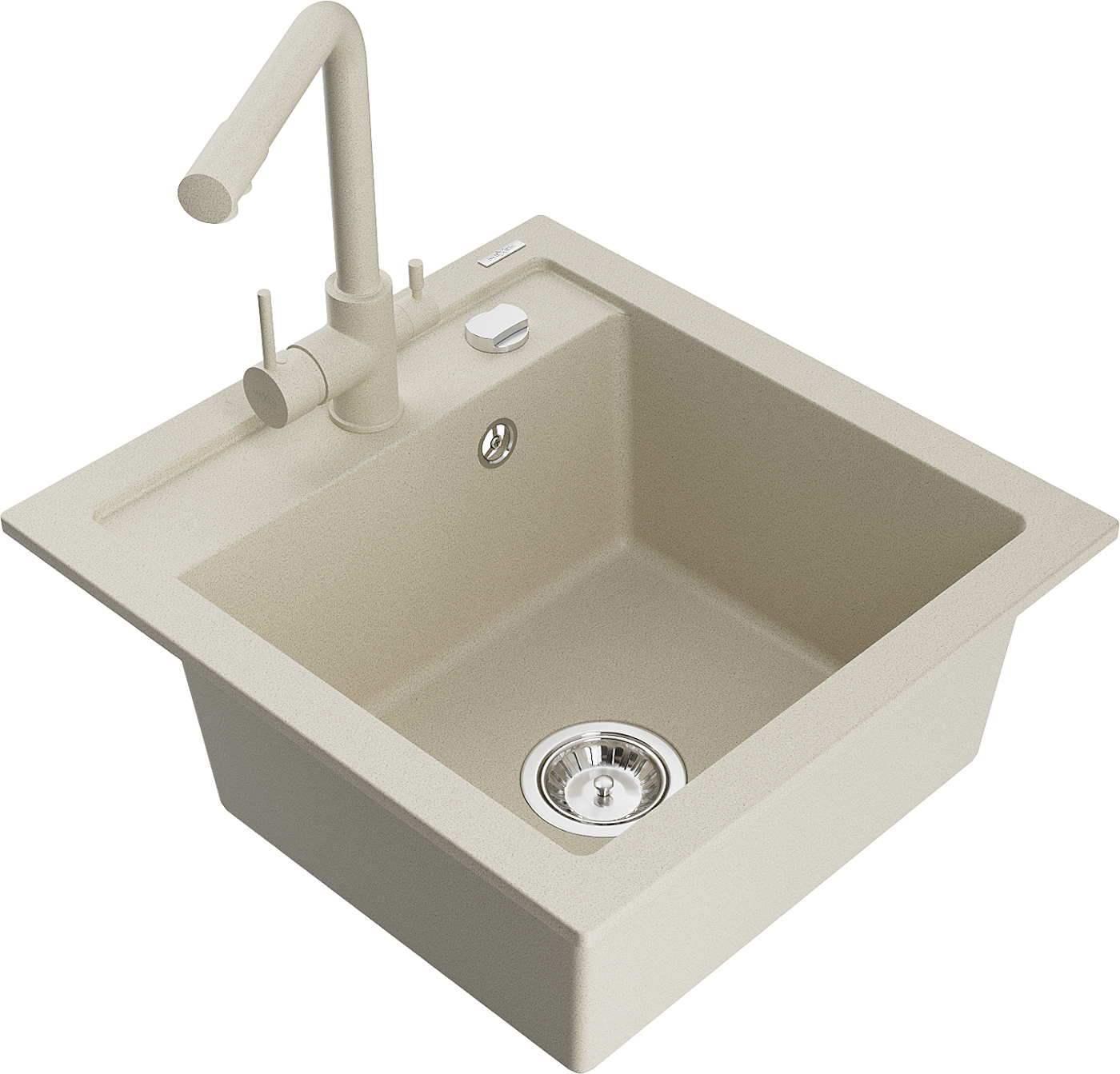 Mexen Vito granitový dřez 1-komorový s kuchyňskou baterií Duero, béžový - 6503-69-671600-69