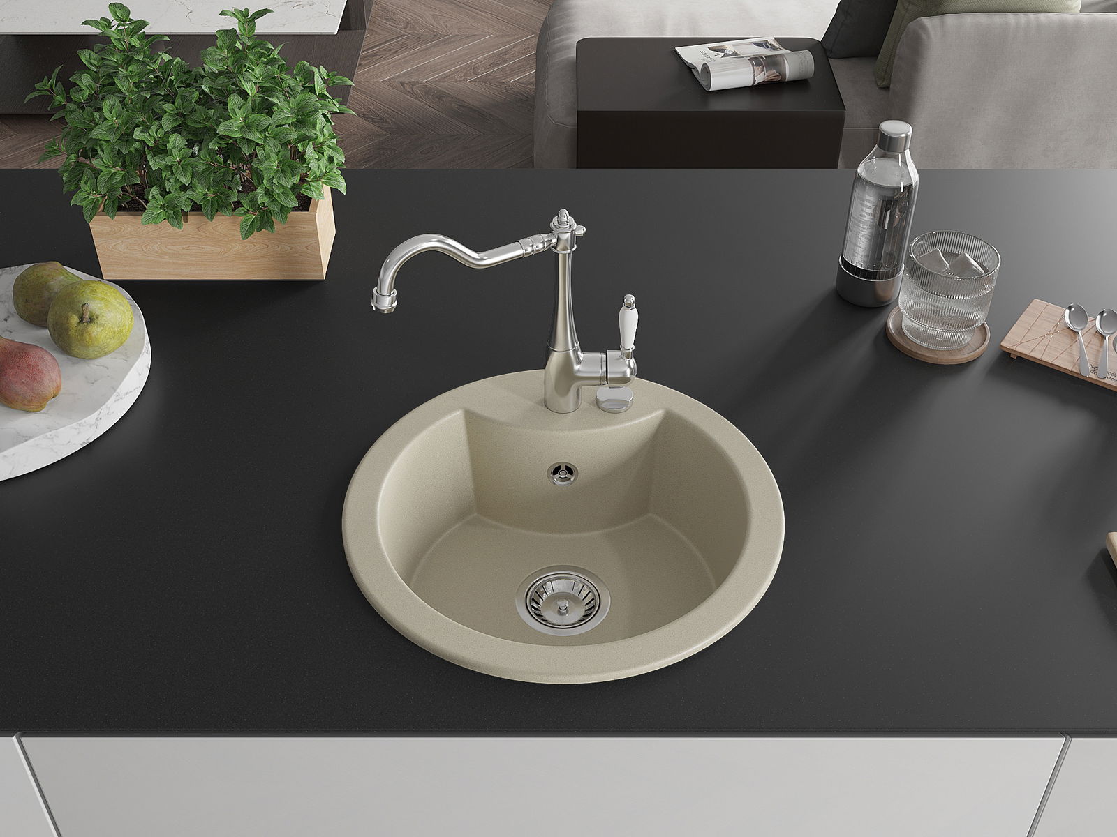 Dřez byl vyroben z vysoce kvalitního granitu. Představuje elegantní a především praktický doplněk každé kuchyně, bez ohledu na její styl. Vysoká kvalita a trvanlivost granitu zajišťují dlouholeté používání.