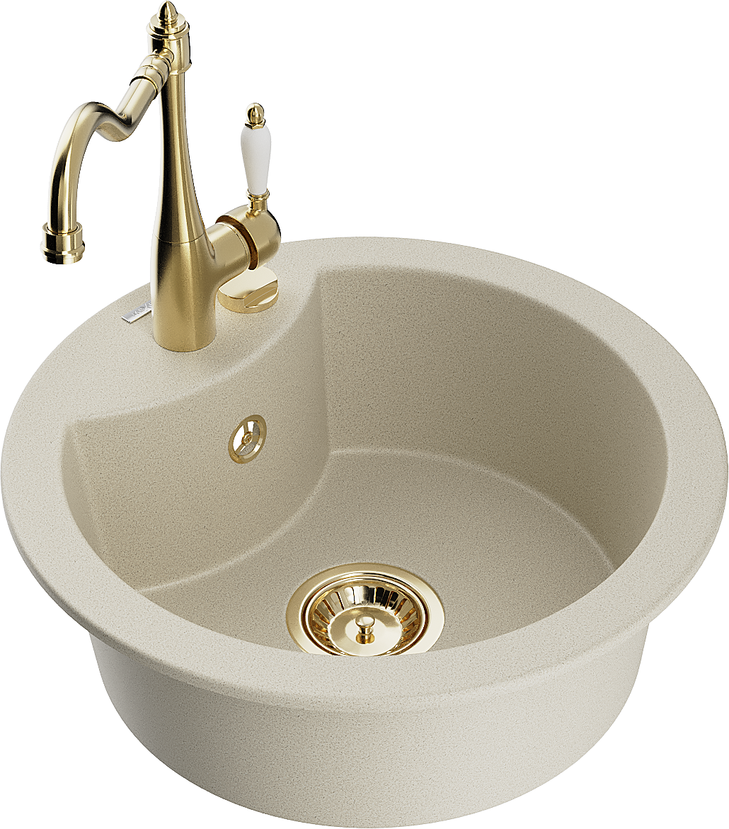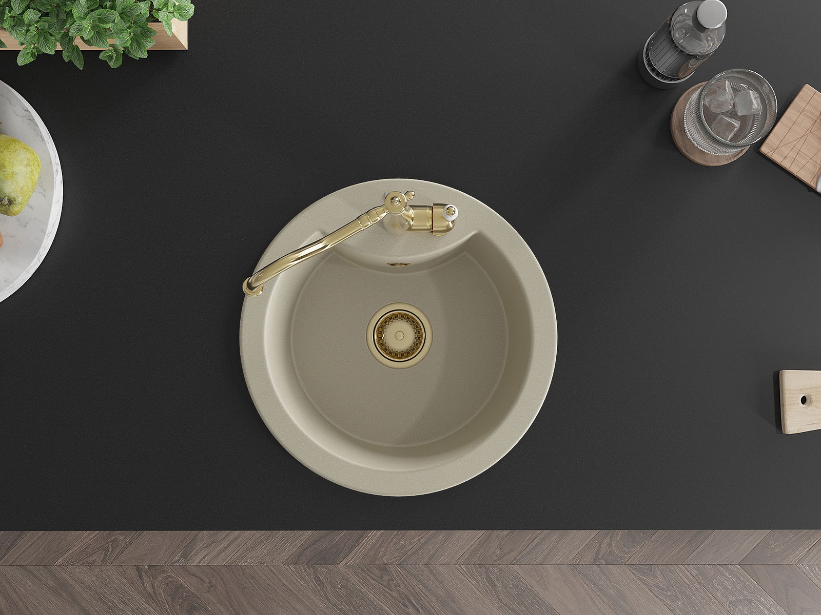 Mexen Diego granitový kuchyňský dřez 1-komorový s kuchyňskou baterií Carla, béžový - 6512-69-670700-50