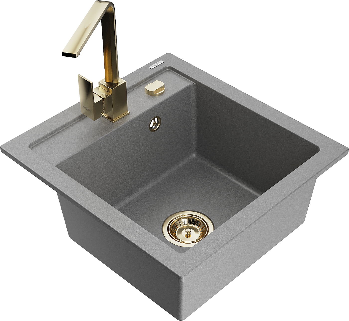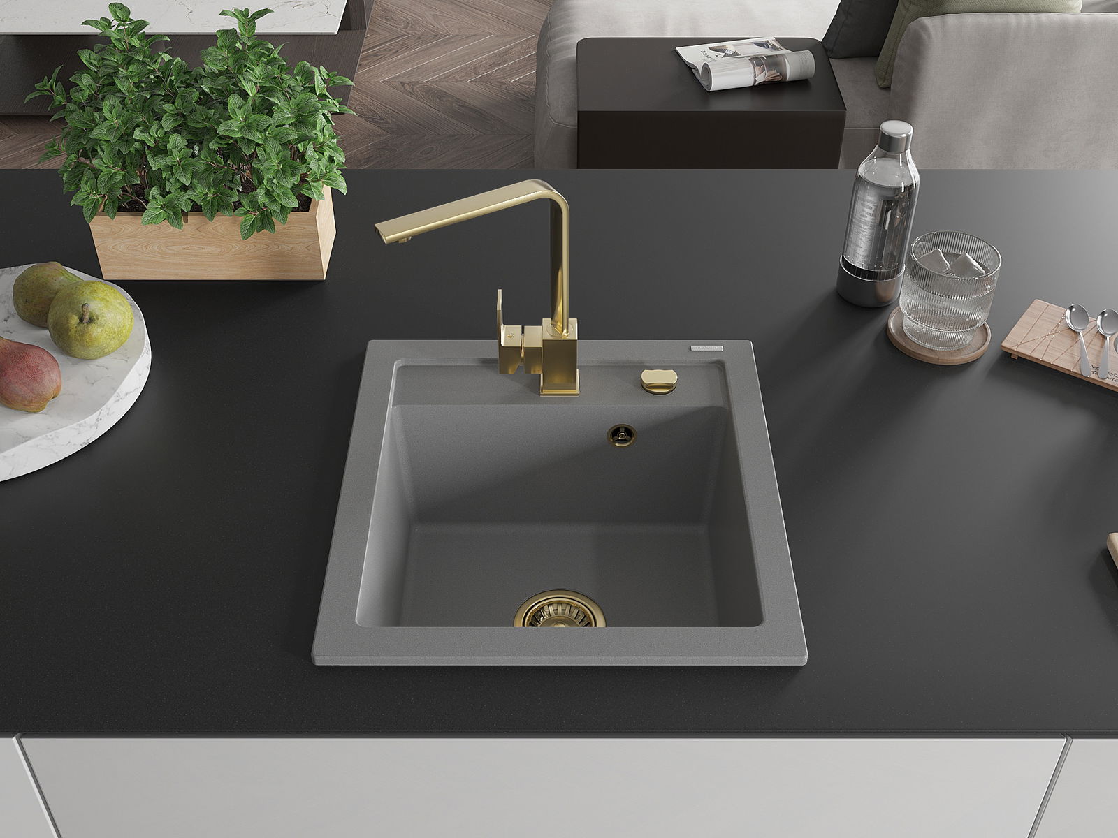 Mexen Vito granitový dřez 1-komorový s kuchyňskou baterií Rita, šedý - 6503-71-670300-50