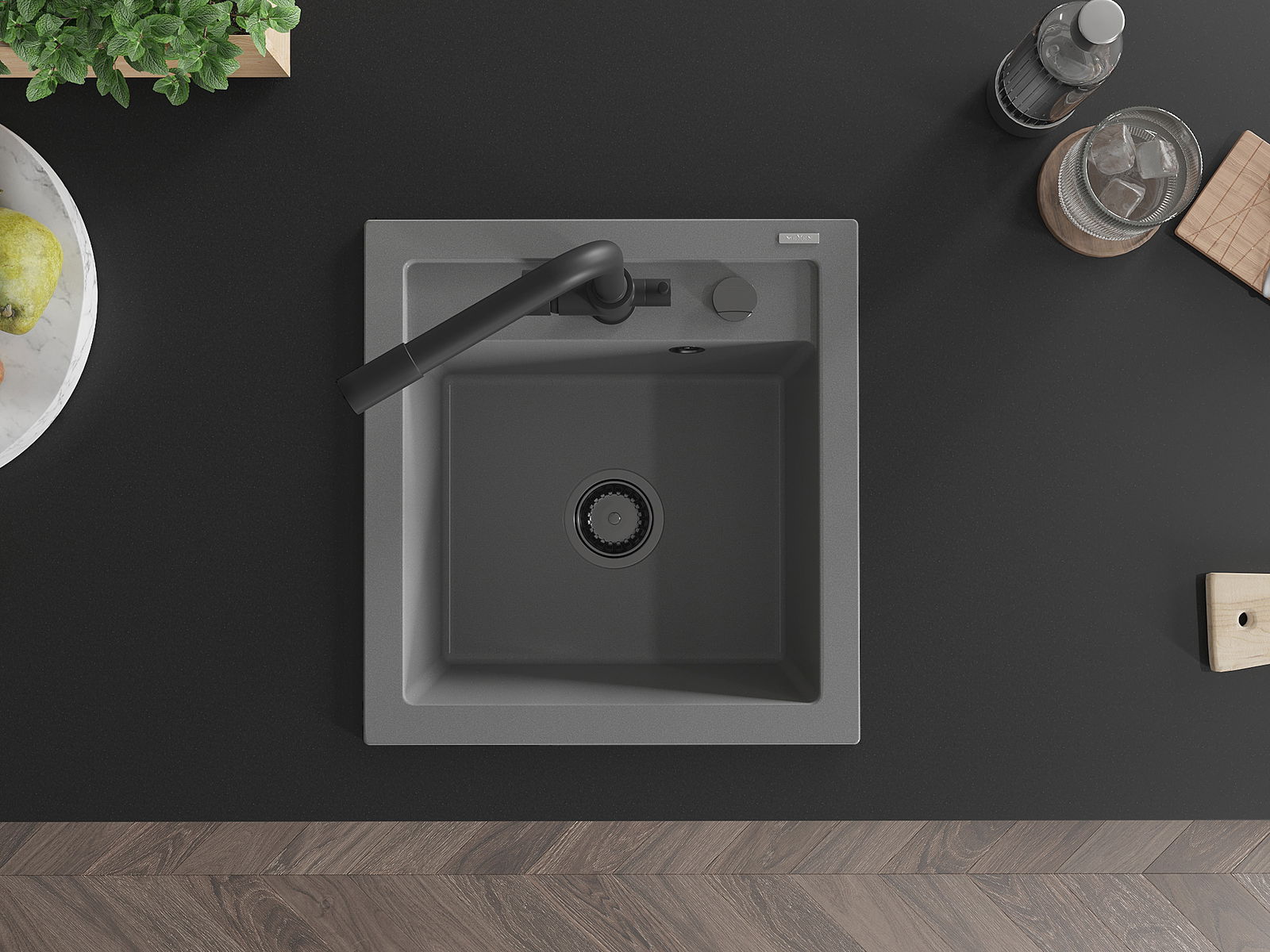 Mexen Vito granitový dřez s 1 komorou a kuchyňská baterie Duero, šedý - 6503-71-671600-70-B