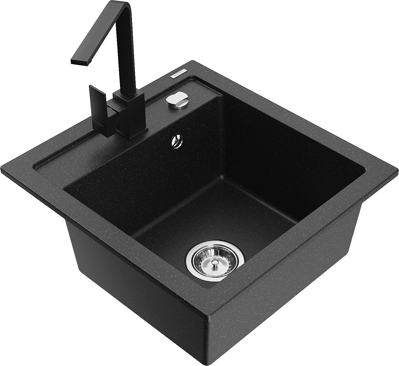Mexen Vito granitový dřez s jednou komorou a kuchyňskou baterií Rita, černý/stříbrný metalický - 6503-73-670300-70