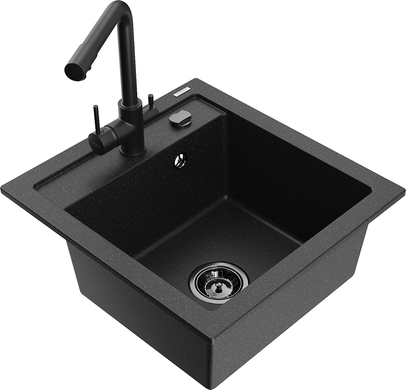 Mexen Vito žulový dřez s 1 komorou s kuchyňskou baterií Duero, černý/stříbrný metalický - 6503-73-671600-70-B